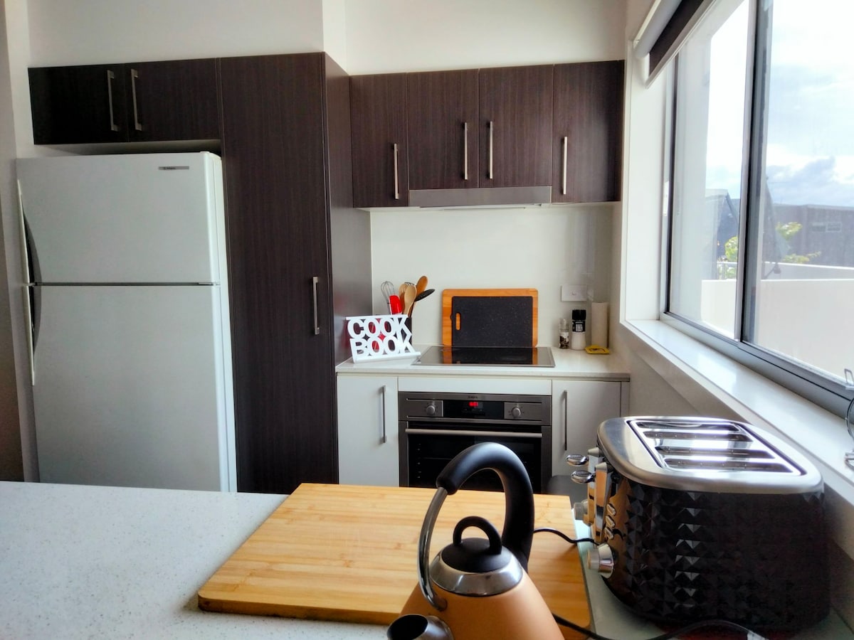 Recently built light filled unit with Smart TV with Netflix and well equipped kitchen including DishDrawer dishwasher. All hours check in with key safe. Street facing front entrance and sliding doors at the rear which open onto a timber deck for your personal use. Short walk to Southlands Shopping Centre which includes great restaurants and Asian and Middle Eastern specialty food shops.