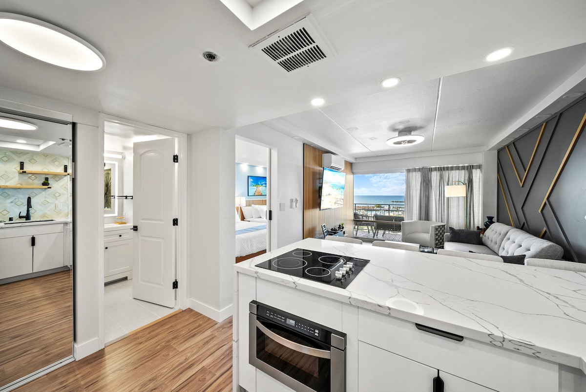 Sumisid sa iyong pangarap na bakasyon sa beach! Masiyahan sa mga kamangha - manghang paglubog ng araw at napakarilag na tanawin ng karagatan mula sa iyong balkonahe at sahig hanggang sa mga bintana ng celling. Ganap na muling idinisenyo ang Luxurious Unit na may gourmet na kusina. Matatagpuan ito sa property sa tabing - dagat sa beach ng Waikiki. Nasa loob ka ng ilang minutong distansya sa halos lahat ng bagay - mga beach, restawran, bar, surfing lesson, boat tour, grocery store, shopping mall, at marami pang iba. Mag - enjoy sa iyong bakasyon sa isang masayang lugar :-)