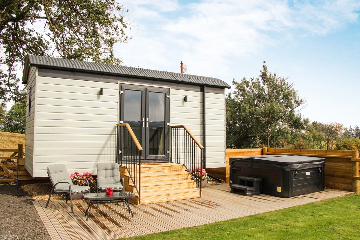 Tangkilikin ang mga tanawin at kapayapaan sa cabin at ang bagong hot tub area. Matatagpuan sa isang maliit na burol na nakaharap sa nakamamanghang tanawin ng lambak na may 360 tanawin. Matatagpuan 2 milya lamang mula sa isang abalang bayan ng Knighton powys at clun Shropshire. na may mga naglo - load upang mag - alok tulad ng iba 't ibang mga pub at restaurant, tindahan at grocery store. Ang hot tub ay 4 -6 na taong sukat na may mga ilaw at jet. Ang aming maliit na cabin ay may lahat ng bagay mula sa buong central heating, shower, refrigerator, smart tv, takure, gas hob, kagamitan , tuwalya ect