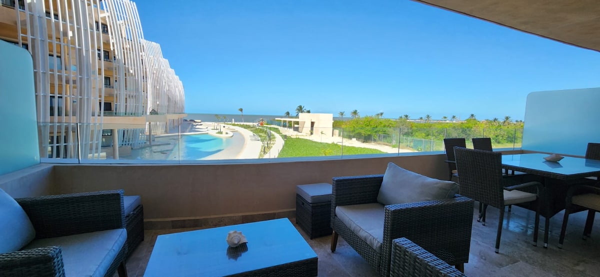 Eksklusibong marangyang apartment sa tabing - dagat na may direktang tanawin ng karagatan mula sa silid - kainan para sa 8 tao. Ganap na nilagyan ng mga de - kalidad na pagtatapos, na nag - aalok ng maluluwag at komportableng sala. Matatagpuan sa Turena, ang pinakabagong condominium sa baybayin ng Yucatecan, sa loob ng residensyal na complex ng Kinuh (Telchac Puerto).