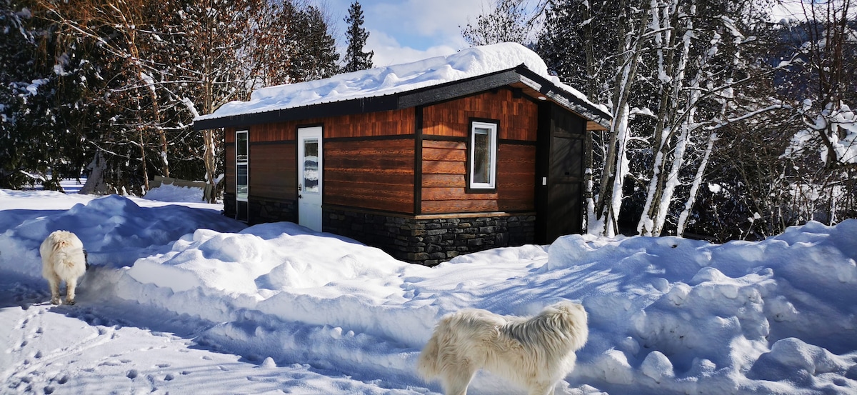 Tuluyan mo man ito sa daan o mas matagal na pamamalagi, masisiyahan ka rito. Ang aming maliit na cabin ay kamakailan - lamang na ganap na na - renovate at napakalinis. Matatagpuan ito 5 minutong biyahe lang papunta sa Sunnybrae beach, 10 minuto papunta sa Blind Bay at 15 minuto lang ang layo ng Salmon Arm. Ibinabahagi ng bakuran ang bakod na may mga kabayo, tupa, at nakakaaliw na kambing. Tinatanggap namin ang mga asong may mabuting asal sa cabin, ipaalam sa amin kung magdadala ka nito.