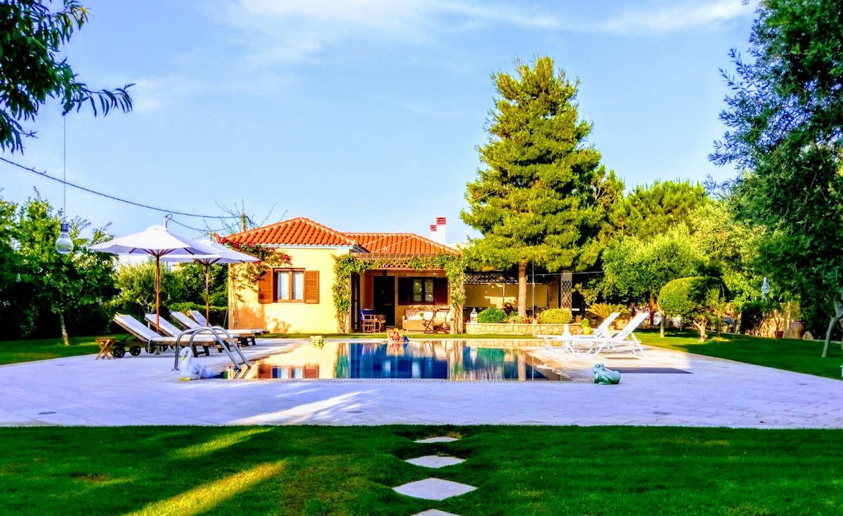 Glyfada Villa 6BR 16ppl Pribadong Pool 300m papunta sa Beach