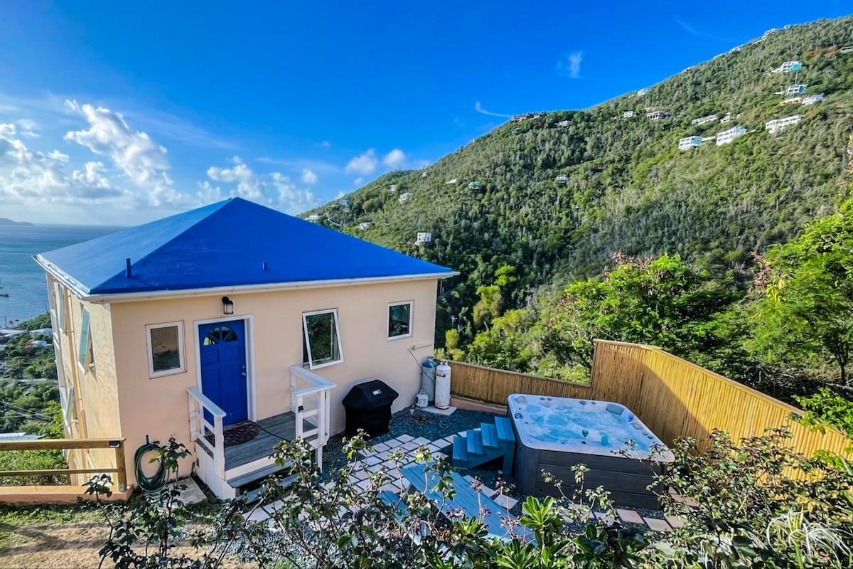 Lovely Cottage with 180 degrees of white water views. You can see and hear the crashing waves below. A/C, Private , Romantic with a gorgeous outdoor shower. Spoon into a nest of intimacy. Immerse yourself in island breezes. Take in the views of the rising sun and moon as they glisten across the crystalline waters of Hurricane Hole. Settle into the rhythm of Island life with solar energy and purified rainwater, resourceful recommendations, advice and insider tips. Welcome to simple elegance.