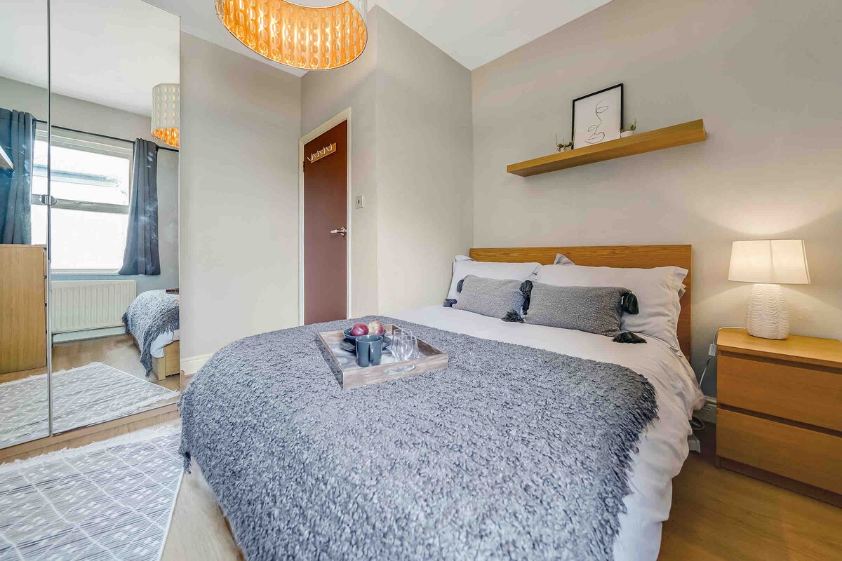 Inihahandog ang perpektong apartment para sa pamilya o business trip sa London. Matatagpuan ang kaibig - ibig na 2 silid - tulugan na flat na may kumpletong kagamitan na ito sa isang tahimik na residensyal na kapitbahayan na malapit sa Excel Exhibition Center at 20 minuto lang papunta sa Central London na may kamakailang binuksan na Elizabeth Line, naging mas madali ang iyong biyahe. Nag - aalok ang apartment ng 2 double bedroom, hiwalay na kumpletong kusina, sala, shower bathroom at hardin.