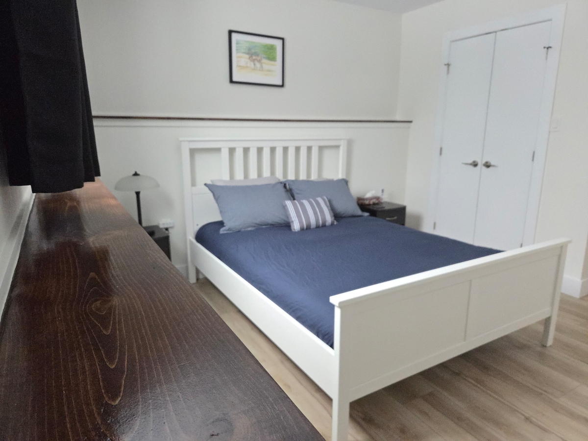 Experience comfortable and spacious bedroom/bathroom and living room. Enjoy morning coffee on our bistro set. All kitchenette items like microwave, electric kettle, fridge, toaster coffee maker, and crockery are included. Have a glass of wine on your own bar counter or enjoy netflix on the large comfy sectional after exploring the scenic beauty of maritime. Free street parking is available. Bus stop is right at the doorstep. 5 min drive to Sobeys, Superstore, NSLC, restaurants, and bars.