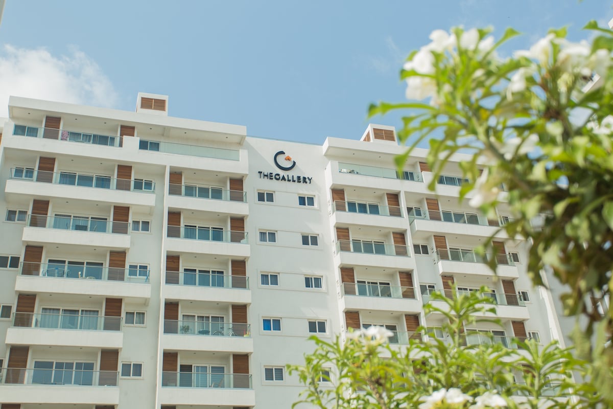 Sa Accra man para sa bakasyon o negosyo, ito ang perpektong lugar na matutuluyan. Ang aming Contemporary Storey Apartment na may mahusay na mga amenidad ng hotel kabilang ang libreng WiFi, malaking gym; matatagpuan sa gitna ng Accra: East Legon; 15 minutong biyahe mula sa Airport at 10 minutong lakad mula sa Accra Mall. Masiyahan sa aming sky view swimming pool @ sa ika -10 palapag kung saan matatanaw ang Lungsod ng Paliparan at kapaligiran. Katulad nito, mapayapa sa aming kamangha - manghang lutuin at bar @ Baa & Bean restaurant na matatagpuan sa bakuran ng central court.