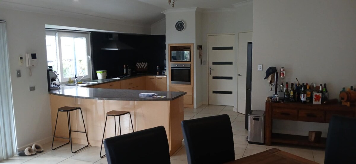 Kumpletuhin ang privacy sa Guesthouse na hiwalay sa pangunahing bahay. Ang driveway ay nahahati sa dalawa at maraming parking space. Puwedeng matulog nang hanggang 4 na tao na may kasamang 1 silid - tulugan na may ensuite, sofa bed sa lounge room, kusina/kainan, palikuran, labahan na may washer at dryer at pribadong patyo. Available ang libreng Wifi. Smart TV na may Netflix. May tsaa, kape, asukal, pampalasa, cereal, gatas, tinapay at linen. Walking distance sa beach, mga tindahan, pampublikong sasakyan.