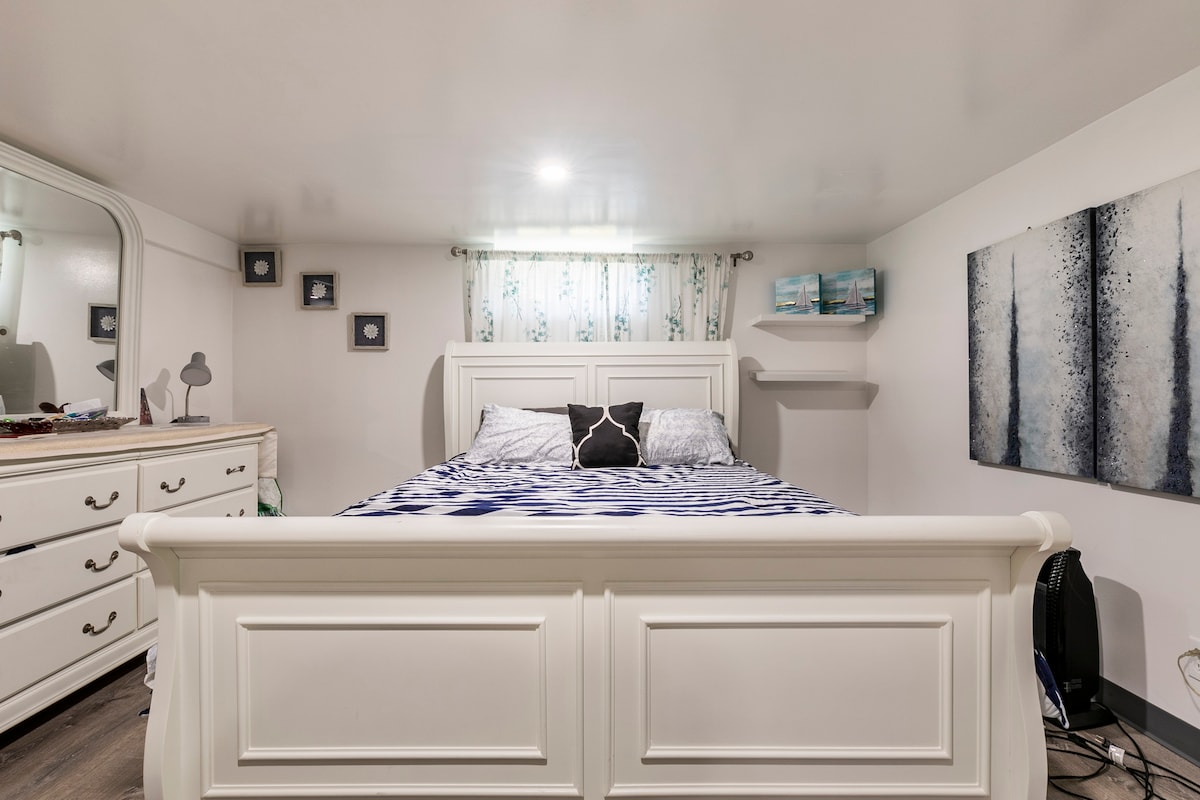 Its coziness will make you feel at home the second you step in. This cute ground floor 280 sq ft Tiny Guest Suite is Fully furnished and nicely decorated - it comes with anything you can possibly imagine. It consist of 1 bedroom 1 bathroom & a kitchen/dining/living room area Rooms' sizes: Bedroom: 10ft x 7 1/2ft LR kitchen DR area: 19ft x 10ft Bath: 40" x 80" Given how close it is from everything - It is perfect for guests who plan on commuting to the city by train or move around by Uber.