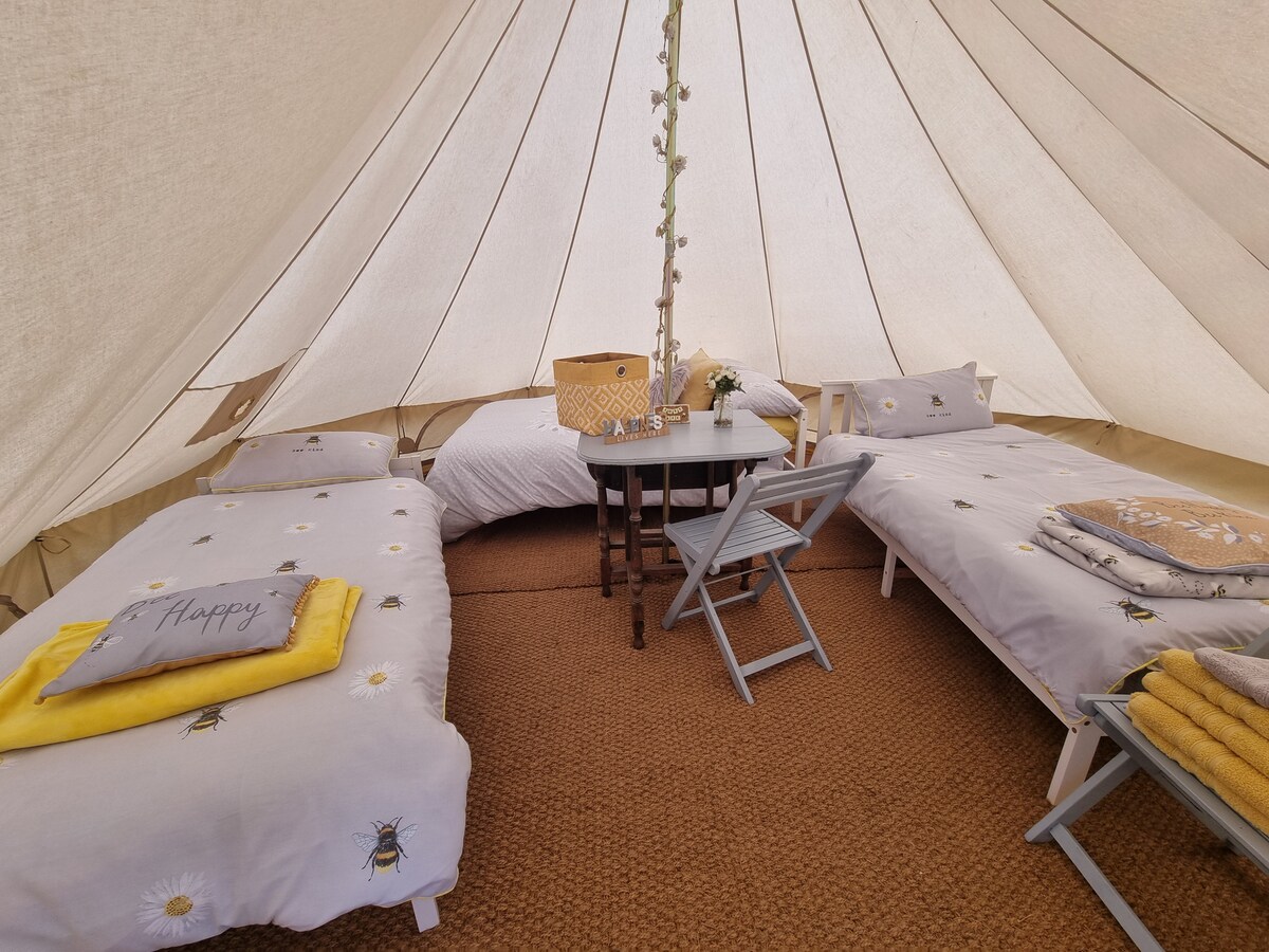 Glamping Bell Tents by the Beach, these unique bell tents come with everything to need to enjoy a holiday on the Norfolk Coast. We have a unique location just a 3-minute walk from the beach, our Glamping Bell Tent overlooks the nature-filled marshland. Showers & toilets are shared with the campsite 5m x 5m of space Fully furnished, double bed, linen supplied We are Dog Friendly, and welcome your pets, please get in touch with us first if bringing more than 1 dog - see house rules for more info