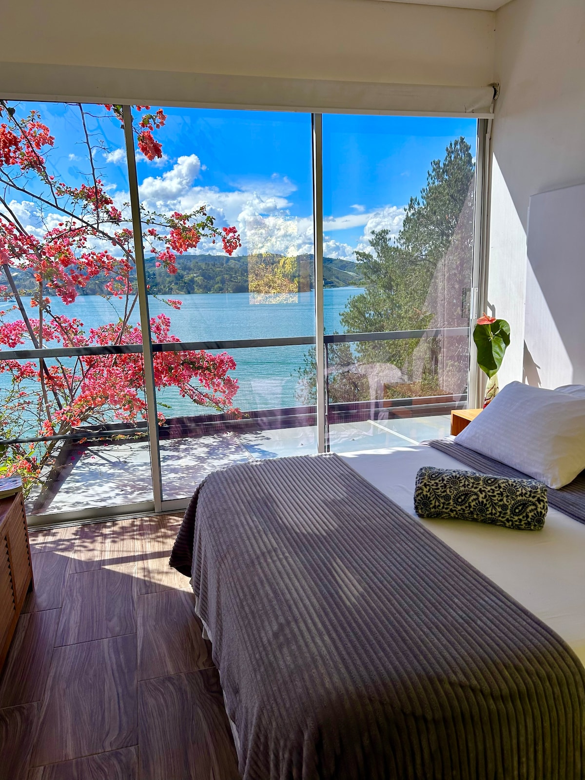 100% pribado . Matatagpuan ang espesyal na lugar na ito sa pinakamagandang lugar sa Colombia, na napapalibutan ng 70km Sq lake vista. Magigising ka mismo sa gitna ng pinakamagagandang handog sa kalikasan, na agad na nagre - refresh ng iyong isip at kaluluwa tulad ng kamangha - manghang katahimikan at lakas ng lokasyong ito, at palagi kaming may tubig dahil matatagpuan kami sa pangalawang pinakamalaki at pinakamalalim na bahagi ng lawa. katahimikan at mga pribadong serbisyo. Kailangang ipadala ng lahat ng bisita ang mga dokumento ng ID