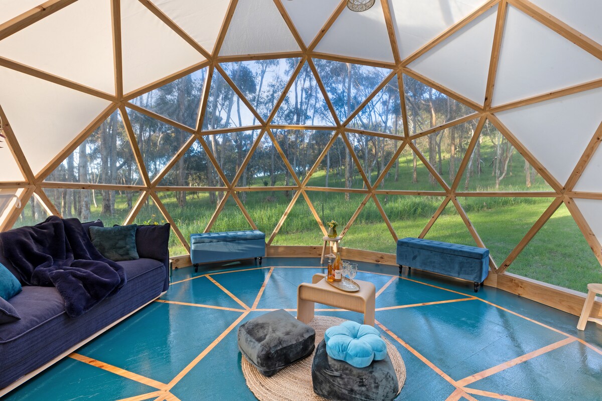 Isang all - inclusive, marangyang glamping na pamamalagi na eksklusibong idinisenyo para sa mga mag - asawa. Dalhin lang ang iyong sarili at maging handang gumawa ng mga alaala ng iyong oras sa Unique Date Night's Dome - ance 💙 Pribadong sinehan sa ilalim ng mga bituin 🎥 🍿 Pribadong hot tub sa labas 🛁 Kasama sa iyong pamamalagi ang: 🍔 🍕 Handa nang magluto ng mga pizza, grazing box o burger kit para sa bawat gabi 😋 Mga probisyon ng Brekky - Mga BBQ goodies para sa bawat umaga ✅ Tanghalian para sa mga pamamalagi 2 gabi o mas matagal pa 🍷 1 bote ng alak at 4 na 🍻 beer