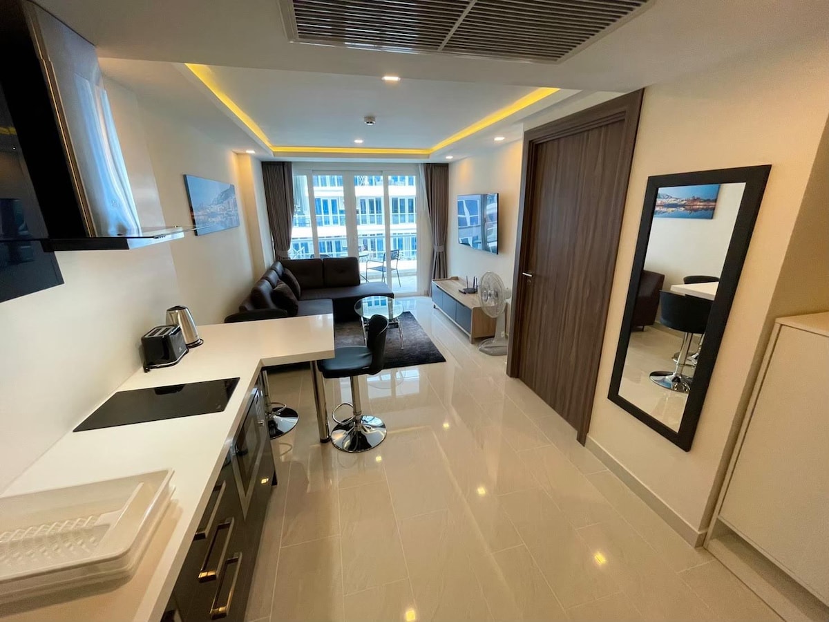 30m²/320ft² Walk from your amazing Lagoon-style Pool straight to the Beach,Perfect for couple stays! ✅ Easy self-check in 24/7 🏖️ CleanA++ Beach Access 🏙️ Close to Pattaya Popular Mall ✔ Sea&Sunset View Balcony ✔ 2Pools+Gym+Suana ✔ QueenBed|Pillows|Towels ✔ In Unit Washer & Kitchen ✔ Smart TV &Fast WiFi ✔ 24/7 security Nearby: 🏪7eleven (2min) 🌃Jomtien NightMarket (5min) 🍹Pattaya FloatingMarket (5min) 🛍️Terminal 21 Pattaya (15min) Add this listing to your wishlist by clicking the ❤️