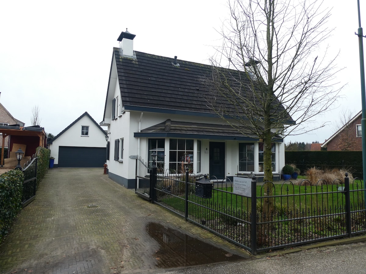 Ang bagong ayos na "Gastenverblijf De Hucht" ay isang magandang lugar para mag-relax...may malaking veranda at malawak na tanawin ng hardin. Para sa iyong pagpapahinga, mayroon ding pribadong wellness. Dahil sa lokasyon, maraming privacy. Maaari ka ring mag-bake ng sarili mong pizza sa stone oven!! Ang "Gastenverblijf De Hucht" ay may sukat na 87m2 at nilagyan ng lahat ng kinakailangang kaginhawa. Mayroong living-dining area na may TV at kumpletong kusina. Mayroon ding 3 magagandang silid-tulugan at isang hiwalay na banyo na may toilet.