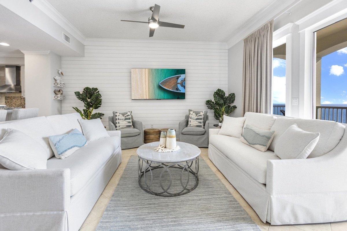 Matatagpuan sa Tower 1 sa ika -19 na palapag, ang aming bagong inayos (2022) na studio ay mayroong makapigil - hiningang, walang kapantay na mga panoramic na tanawin ng Gulf of Mexico. Ang high - end at propesyonal na dekorasyon na oceanfront condo na ito ay nag - aalok ng kahanga - hangang mga kasangkapan, sapat na espasyo, 550 sqft, at isang perpektong pagkakataon para sa isang romantikong getaway sa isa sa mga pinakasikat na resort ng % {bold: Majestic Beach Resort. Ang lugar na ito ay parang isang upscale na hotel na ilang talampakan lang ang layo mula sa beach. Kasama ang serbisyo sa beach mula Marso 1 hanggang Oktubre 31.
