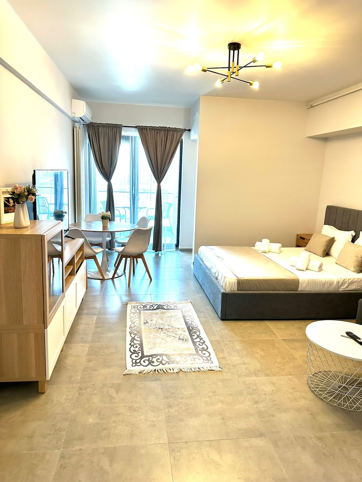 Nagtatampok ang kusinang may kumpletong kagamitan ng kalan, refrigerator, kagamitan sa kusina, at microwave. Nag - aalok ang studio ng pribadong pasukan, tsaa at coffee maker, balkonahe na may mga tanawin ng dagat at pribadong banyo na nagtatampok ng shower. Nag - aalok ang unit ng 2 higaan.