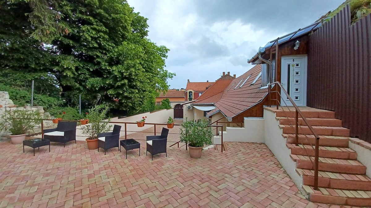 Matatagpuan ang BellaVista Guesthouse sa itaas ng Eger Castle, sa tahimik na berdeng lugar. 5 minutong lakad lang ang layo ng Eger Castle, at 15 minutong lakad ang layo ng sentro ng lungsod at thermal bath. Libreng paradahan sa harap ng bahay Mga studio o 2 - room na family apartment na may kusina. Puwede kang i - book bilang self - catering pero puwedeng humiling ng almusal nang may karagdagang bayarin. May takip na terrace, bakuran, at mga pasilidad para sa barbecue. Nagbibigay kami ng travel cot, high chair, at baby bath para sa maliliit na bata.
