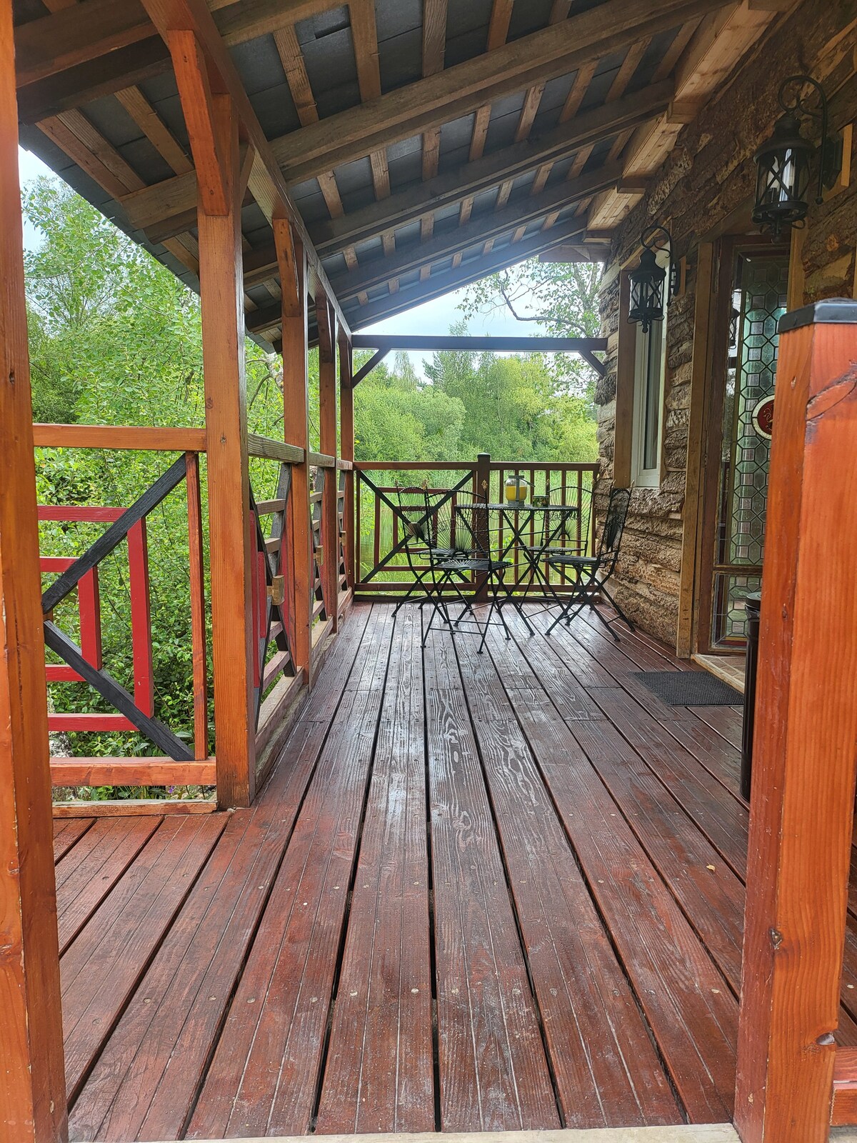 Kaakit - akit na kahoy na bahay at lawa