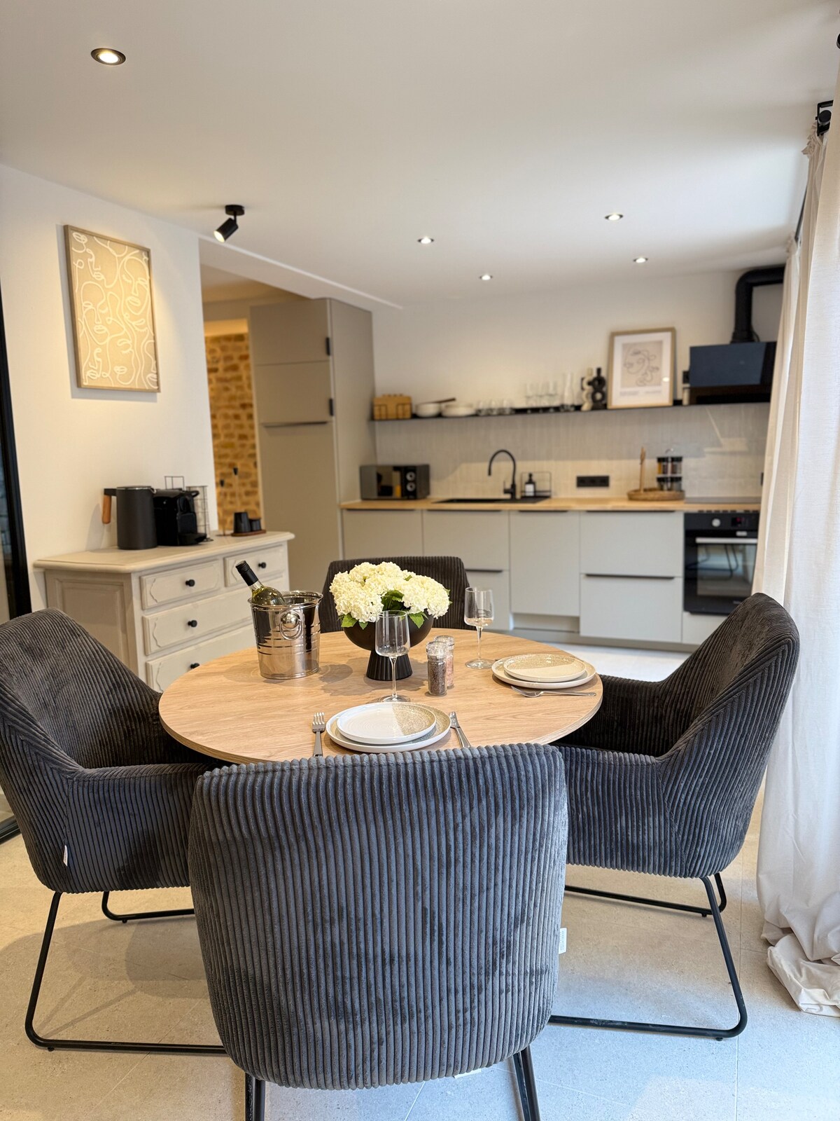 Naka - istilong apartment na may smart TV at kusina