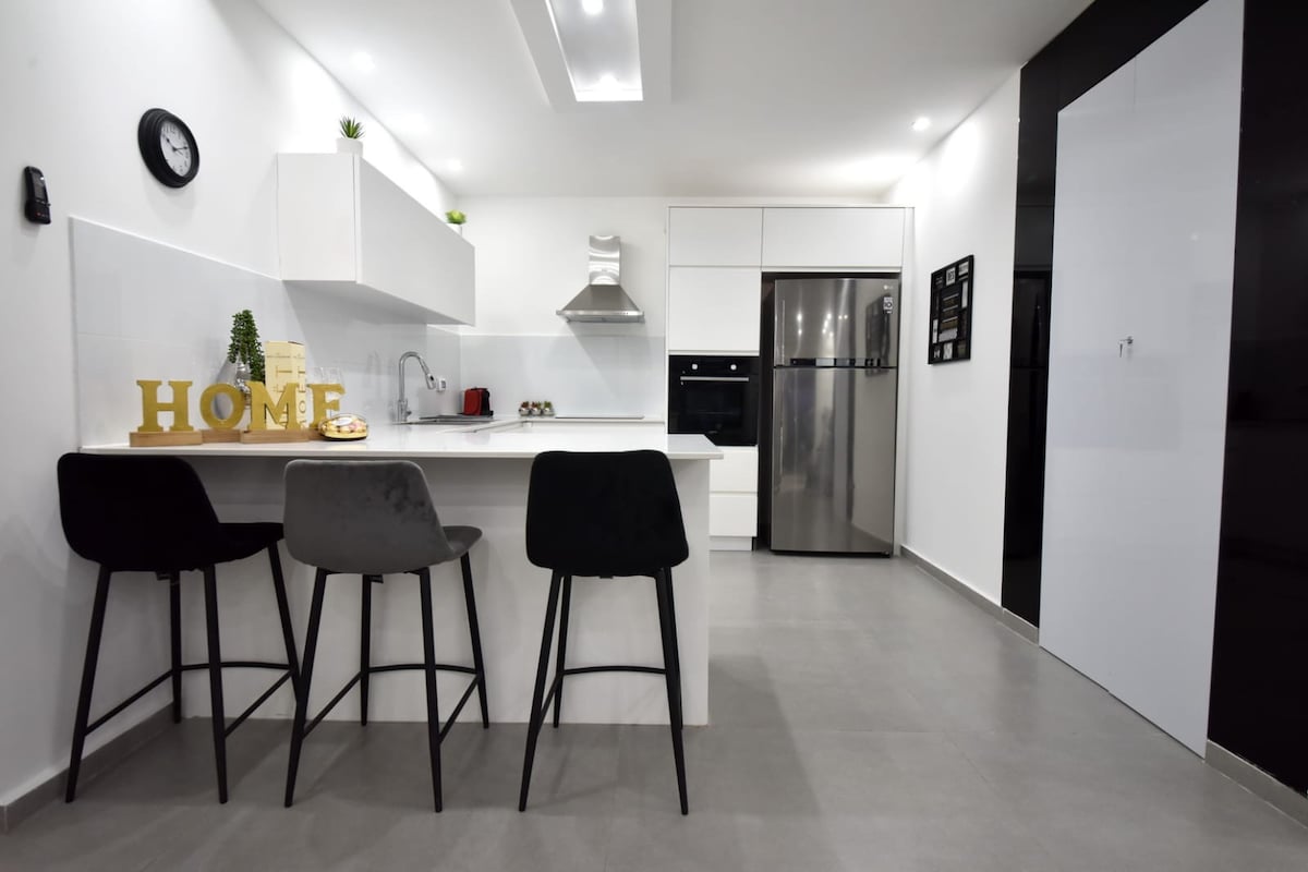 ⚠️Pagho-host lang ng mga Pamilya⚠️ Pumasok sa Eilat Prestige kung saan nagtatagpo ang bagong‑bagong luho at ang pinakamagandang lokasyon. Perpektong nakapuwesto sa tabi ng masiglang Terminal Park, nag‑aalok ang aming apartment ng sopistikadong urban oasis na malapit lang at maganda ang tanawin paglalakad mula sa boardwalk (Tayalet), Ice Mall, at mga beach sa Red Sea. Idinisenyo para sa mga pamilya o magkasintahan na ayaw magkompromiso sa kaginhawaan. May dalawang malawak na kuwarto at dalawang kumpletong banyo, kaya may sariling espasyo ang lahat para magpahinga at mag‑relax pagkatapos ng isang araw sa labas.
