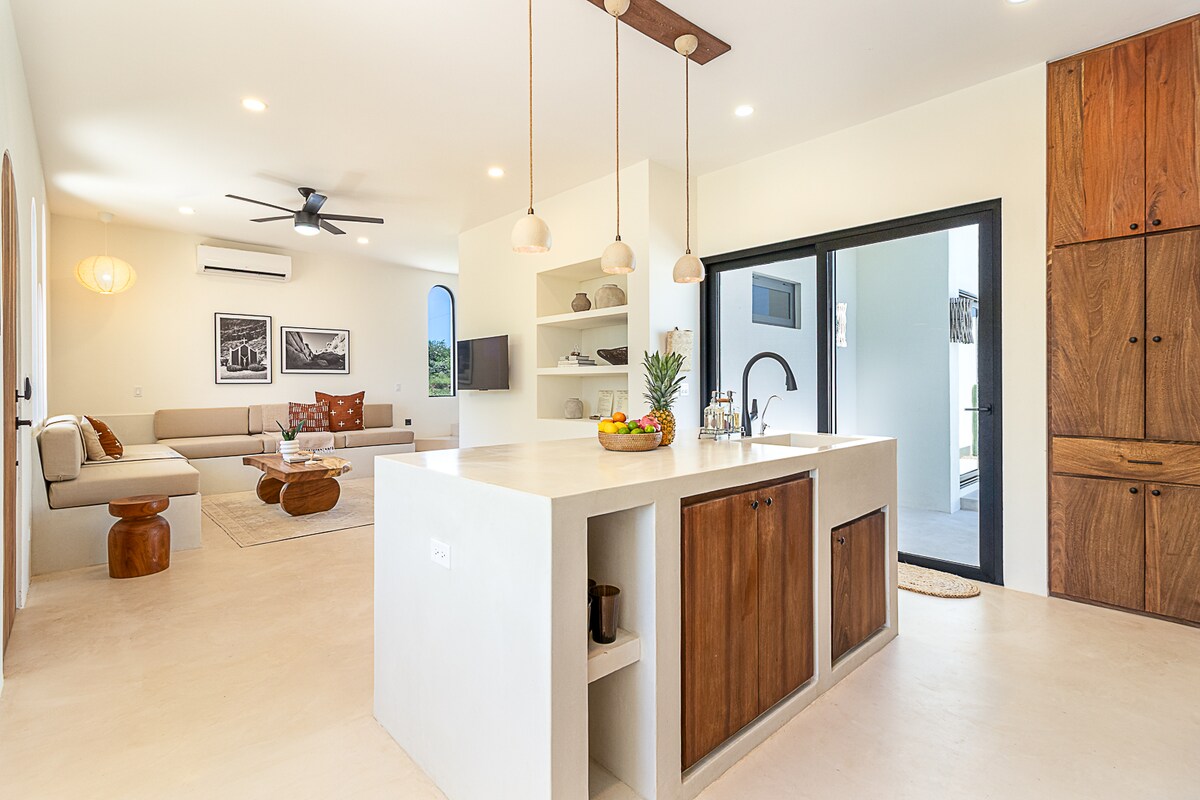Mga astig na tanawin mula sa bawat direksyon! Ikaw ay blown ang layo sa pamamagitan ng kagandahan ng Baja California Sur mula sa bagong - bagong, eleganteng, at ganap na hinirang na apartment. Tangkilikin ang kape sa deck habang pinapanood ang pagsikat ng araw sa ibabaw ng mga bundok. Pagkatapos ng iyong araw surfing at swimming sa Cerritos beach (ilang minuto lamang ang layo sa pamamagitan ng paglalakad o kotse) magrelaks sa hot tub habang ang araw ay lumulubog sa ibabaw ng Pacific. Sa pamamagitan ng mga walang harang na tanawin mula sa bawat anggulo, garantisadong makakakita ka ng paglabag sa mga balyena sa panahon ng panahon. Higit pang privacy kaysa sa mga condo