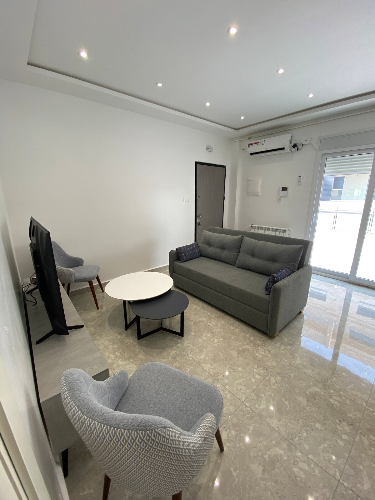 Détendez-vous dans ce logement calme et élégant, d’une superficie de 50m2 en open spaces, Rez de chaussée avec accès indépendant et sans vis à vis, ensoleillé et aéré, dans une petite résidence immobilière privée privée, place parking réservée, entièrement meublé et équipé, chauffage centrale, climatiseurs, cuisine équipée, lave linge, lave-vaisselle, micro-ondes, frigidaire, citerne, wifi, parabole, endroit calme et sécurisé, commerces à proximité, accès rapide autoroute.