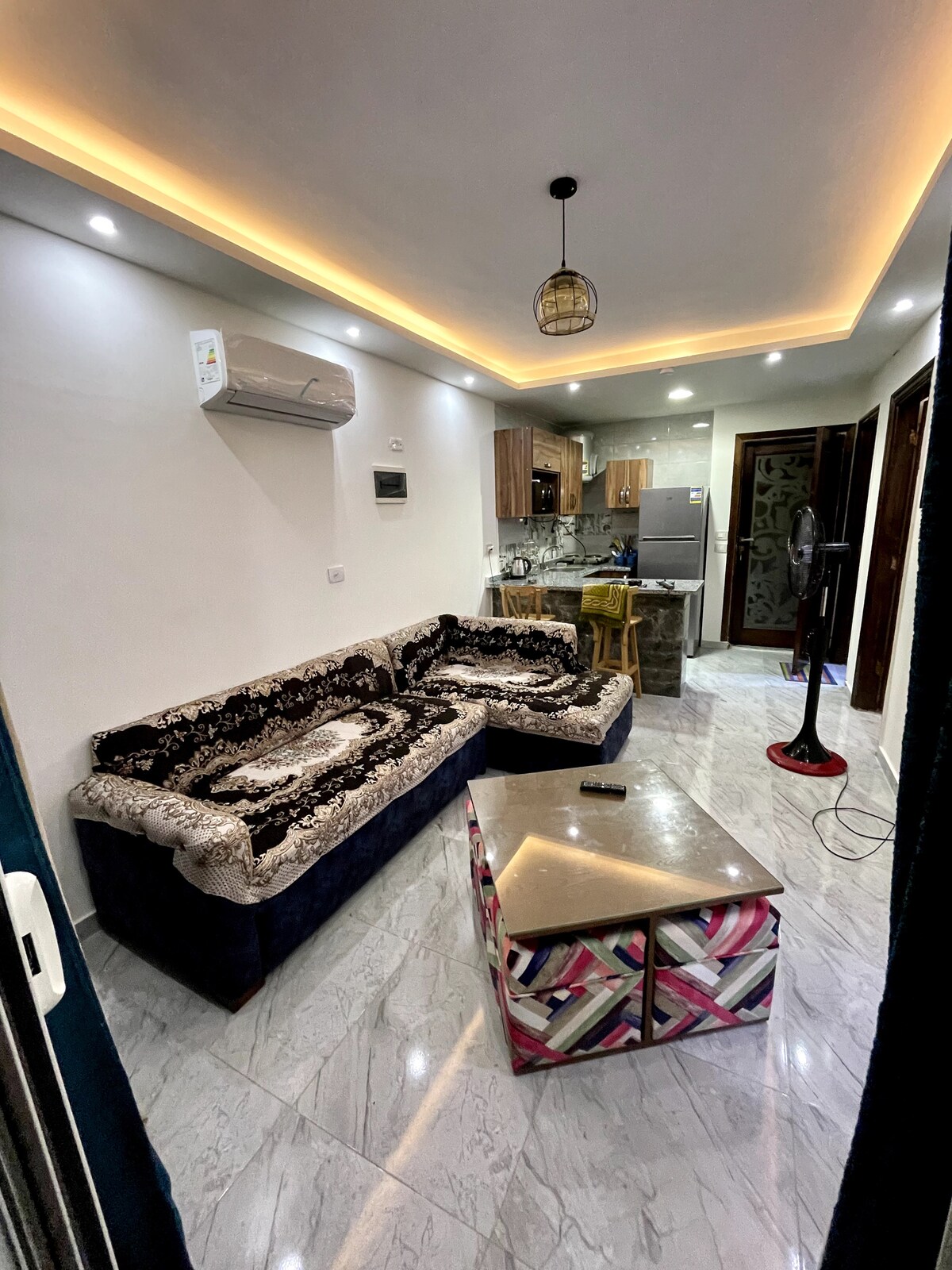 Gumawa ng ilang alaala sa natatangi at pampamilyang tuluyan na ito. Matatagpuan ang tirahan sa Downtown Barq Al Alamein na may natatangi at natatanging lokasyon sa likod ng mga sikat na tore ng Al Alamein, malapit sa beach, tower area, bank complex na may distansya na tatlong minuto sa pamamagitan ng kotse o 15 minuto sa paglalakad. Binubuo ang apartment ng kuwartong may king bed na may dalawang gilid ng dagat, mga tore ng Alamein, naka - air condition na double room at naka - air condition na kuwartong may pantry - moderno, smashhasha TV, modular na biyahero ng pamilya, kusinang kumpleto sa kagamitan, 2 banyo, at matalinong pasukan