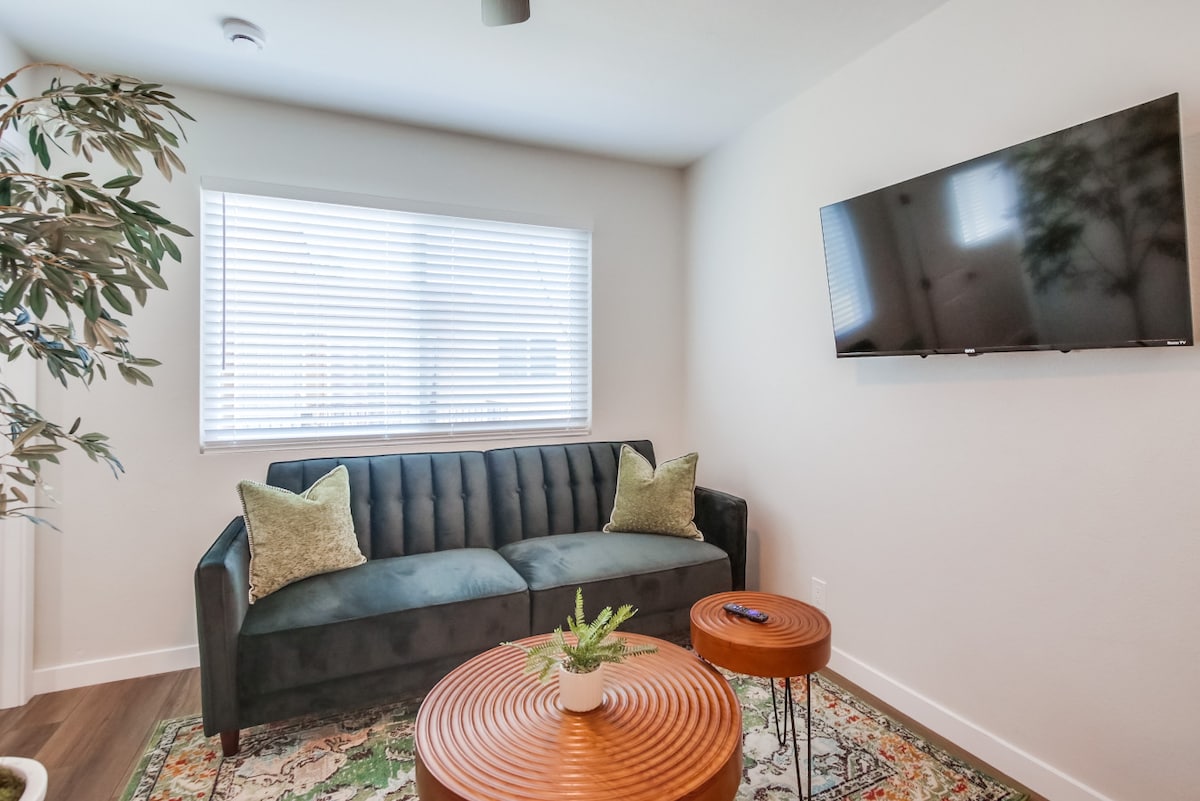 1st floor unit! Oasis of confort just 10 minutes from downtown! This inviting space features a large elegant room, a cozy second room with a double bed, and a pull-out couch in the living room. Enjoy a modern equipped kitchen , a stylish bathroom with a bathtub, and a laundry room. Stay connected with free Wi-Fi and cool off with A/C. Unwind by the fire pit on the peaceful patio. Free parking ,easy access to highways, Bonita and Chula Vista Center malls, and Chula Vista Bayfront.