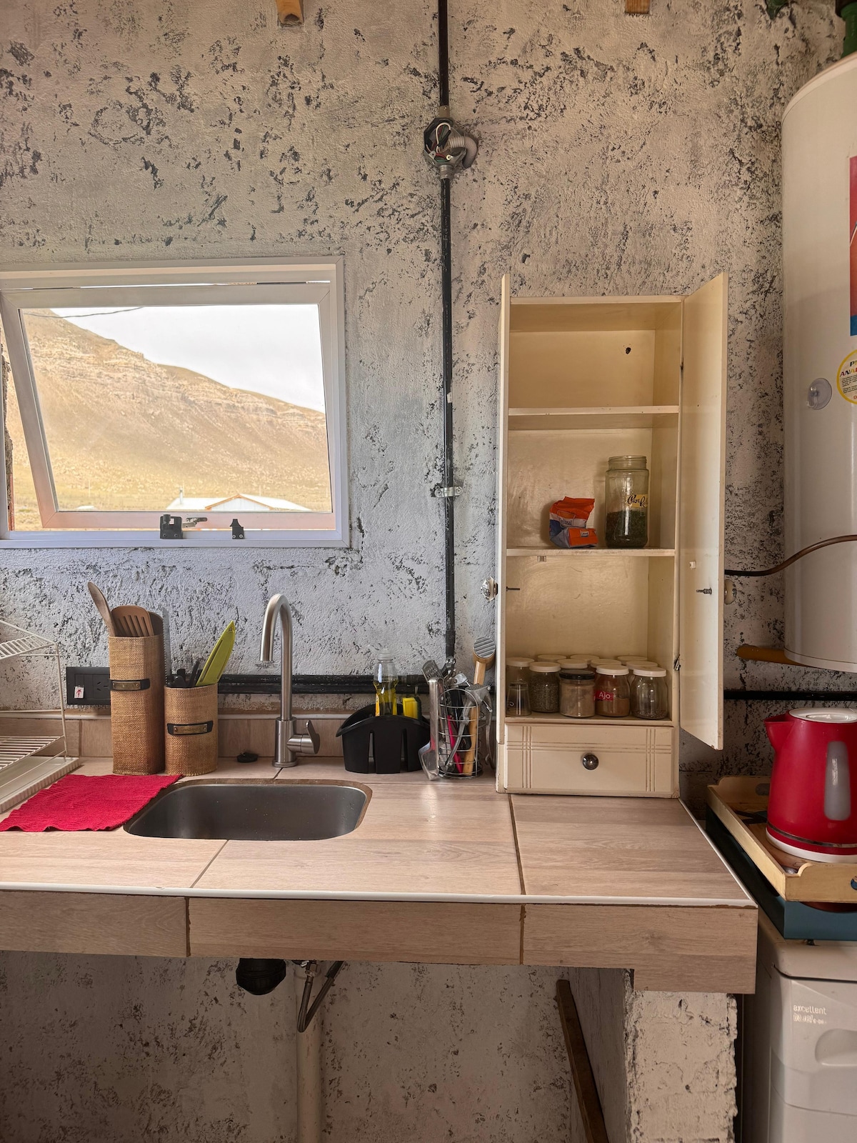 Kumpleto ang kagamitan sa cabin, na may grill, laundry room at malaking patyo para masiyahan sa labas, at may sariling paradahan. Malapit kami sa Lake Argentino at isang magandang baybayin na may magandang tanawin, anim na bloke lang mula sa terminal at labing - isang bloke mula sa downtown.