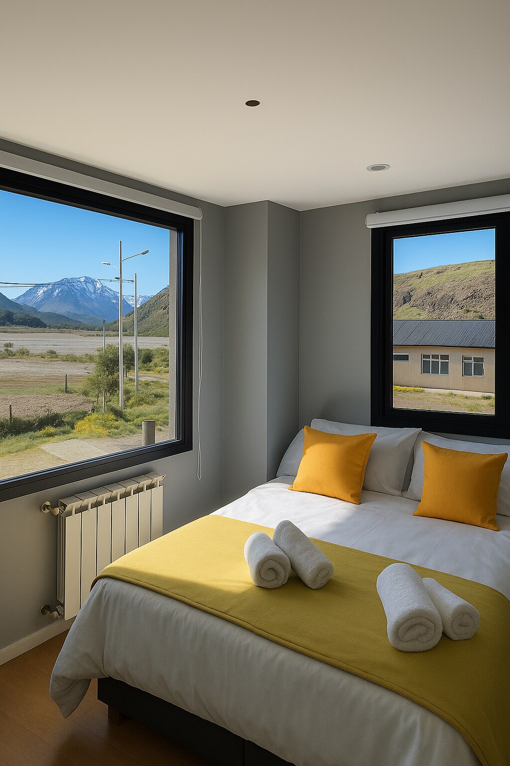 Kuwartong may almusal sa Hostería Fitz Roy. Nilagyan ng mga sommier, pribadong banyo, hair dryer, ligtas at central heating. Walang TV ang mga kuwarto. Napakahalaga: Ang Wi - Fi ay gumagana lamang sa mga common area, karaniwang hindi ito umaabot sa mga kuwarto dahil sa El Chaltén ang mga koneksyon ay hindi maganda. Masisiyahan ka sa magagandang tanawin ng bundok mula sa silid - almusal tuwing umaga!