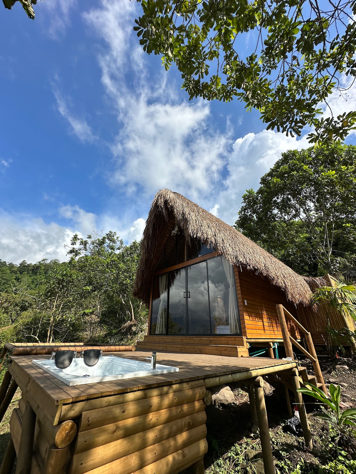 -Desconéctate de la ciudad en un hermoso glamping de guadua en medio de la naturaleza. Sin vecinos, ni ruido -Duerme al arrullo de la quebrada y despierta con el sol de la terraza de la habitación -Disfruta de un hot-tub de piedra de uso exclusivo -Aprovecha el aire libre y los jardines para pasear con tus mascotas -Chorrera en el jardín para bañarte -BBQ, cocina con estufa, nevera y utencilios -Electricidad, agua caliente, toallas y sábanas -Relax a 35 km de Bogotá -Domicilio de alimentos -Wifi