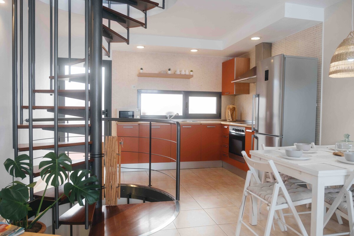 Apartment na may magandang roof terrace at tanawin ng palm garden at dagat. Mag‑enjoy sa kusina sa labas, ihawan, komportableng lugar na kainan, at maaraw na lounge. Ang pinakamagandang bahagi ay ang lokasyon na may direktang access sa beach at dagat. Perpekto para sa mga araw ng pagrerelaks, mga tanawin sa dagat, at mga gabing pagtitipon sa labas. Magbakasyon ka para magrelaks at magpahinga!