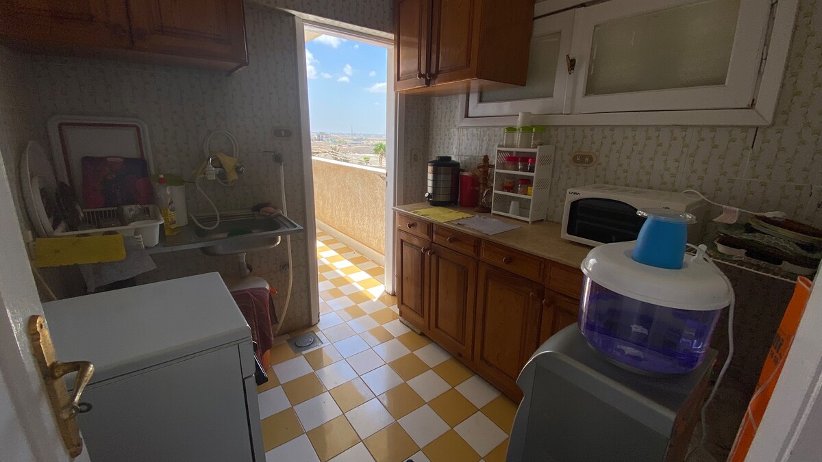 Ang "Pool House" ay isang home studio, komportable , estilo ng pool / hardin. Walang mga beach sa nayon, kung saan matatagpuan ang Morsi Road sa Alexandria, ngunit may 26 na swimming pool bukod pa sa pribadong beach para sa mga kasero at nangungupahan na kabilang sa nayon ng Al - Ahlam na 5 minutong biyahe ang layo. Walang kapantay ang lugar sa mga tuntunin ng disenyo, kalidad at pagsasamantala sa tuluyan at may kasamang Super King na higaan at upscale na sofa, na nagtatampok ng mga marangyang dekorasyon at maximum na 2 + bata . Para sa mga naghahanap ng kahusayan lamang dito, makikita mo ang lugar na natatangi para magkaroon ng sarili nitong estilo.