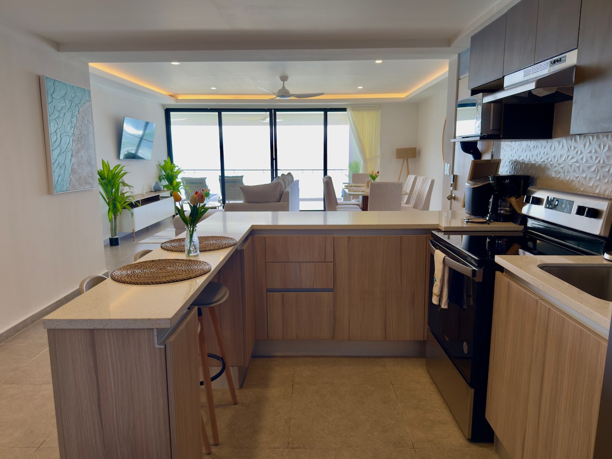 Nakamamanghang 3-bed, 2.5 bath beachfront boutique apartment sa Playa Las Tunas sa ika-5 palapag (may access sa elevator), na nasa ibabaw ng talampas na may nakamamanghang tanawin ng Gulf of Fonseca at beach. Malawak na terrace na may magandang tanawin ng paglubog ng araw. Masiyahan sa bubong ng komunidad na may 360° na tanawin ng Golpo at mga bulkan. Mga hakbang papunta sa pribadong beach, na may infinity pool, ligtas na paradahan, at may gate na pasukan. Perpektong lokasyon para sa tahimik na bakasyon sa beach. Malapit sa Espiritu de la montaña, ilang isla, at maraming restawran.