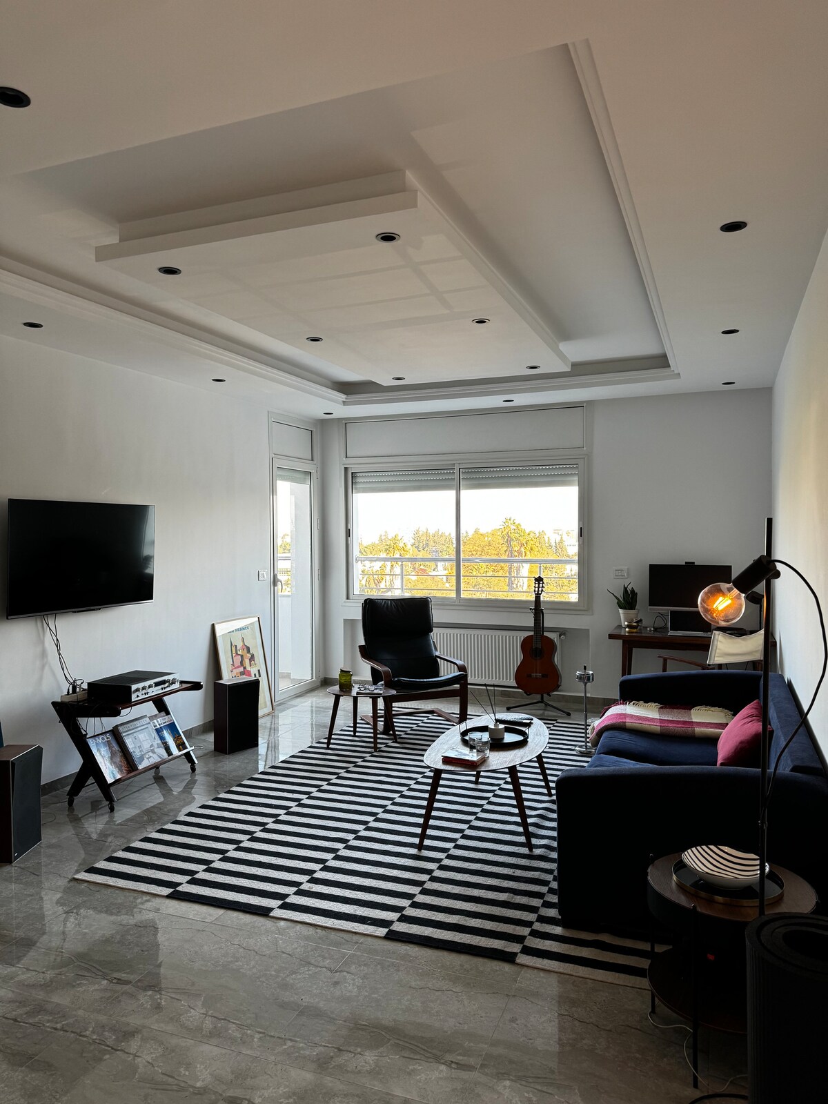 Bienvenue dans cet appartement Mid-Century au 4ᵉ étage (sans ascenseur), au cœur de Tunis mais dans un quartier calme ! Entièrement pour vous : deux chambres confortables, grand salon, bureau et coin thé. Décor soigné, vue magnifique. Tout l’équipement nécessaire est là et le confort est garanti. Je suis toujours disponible et partage volontiers mes meilleures adresses pour que votre expérience à Tunis soit parfaite ! Un appartement parfait pour découvrir Tunis.