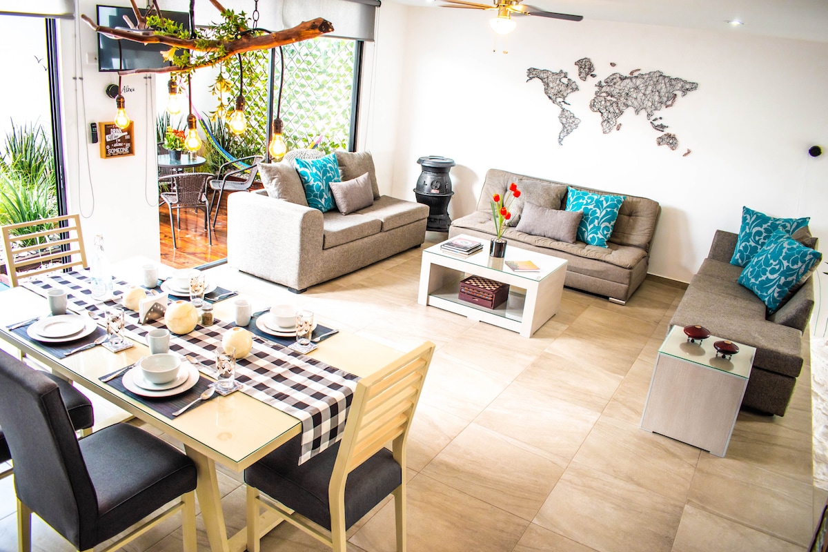 Masiyahan sa isang natatanging bakasyunan sa Casa Fontana, isang kanlungan ng kapayapaan at kalmado sa Zibatá & Golf Residencial. Magagawa mo ang mga aktibidad sa labas, pag - isipan ang kalikasan, golf, o mag - enjoy lang sa campfire sa gitna ng mga puno ng prutas sa aming patyo. Ang bahay ay may estilo ng Mediterranean, sariwa at moderno. Mainam para sa mga mag - asawa, pamilya, kaibigan, business traveler, at mahilig sa kalikasan.