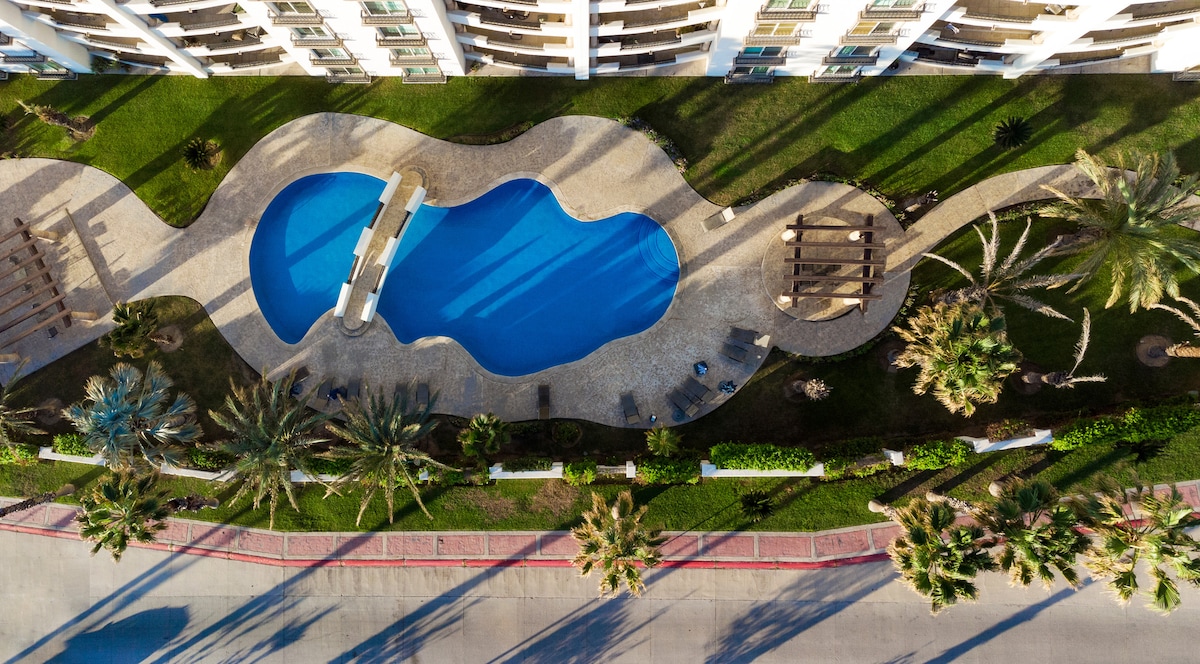 Magandang Condo na Matatagpuan sa Puso ng Cabo San Lucas sa 3 minutong paglalakad sa sikat na Beach EL MEDANO kung saan makikita mo ang Opisina, Mango Deck at lahat ng mga Masayang aktibidad na Iniaalok ng EL MEDANO Beach. 8 minutong paglalakad sa Marina at Puerto Paraiso Mall lamang 8 minutong paglalakad sa Downtown Restaurant at Nightlife. Ang 2 silid-tulugan at 2 buong banyong condo na ito ay may magandang tanawin ng Pool at lahat ng kaginhawa ng tahanan. Kumpletong kusina, TV, wifi, sound bar Mayroon ng lahat ang Condo Paraiso One Medano!