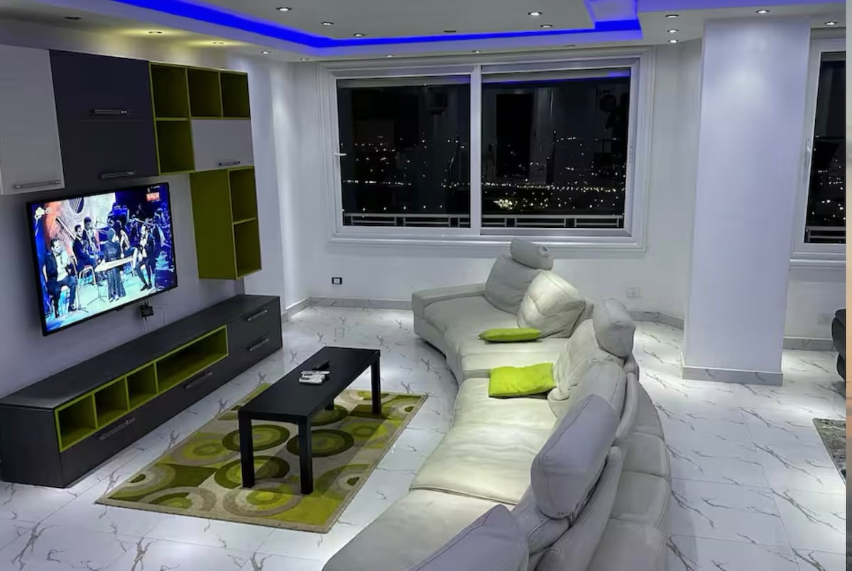 Malapit sa lahat ang iyong pamilya kapag namalagi ka sa sentral na lugar na ito. At pinapayagan ang iyong bisita anumang oras , Ang apartment ay napaka - istilong at natatangi , tinatayang hotel apartment at romantikong lugar na may pribadong Jacuzzi sa kuwarto at tamasahin ang pinakamahusay na tanawin ng paglubog ng araw at libangan ng karamihan ng mga sikat na lugar sa Egypt . Malapit na Mountain View at bagong Cairo .