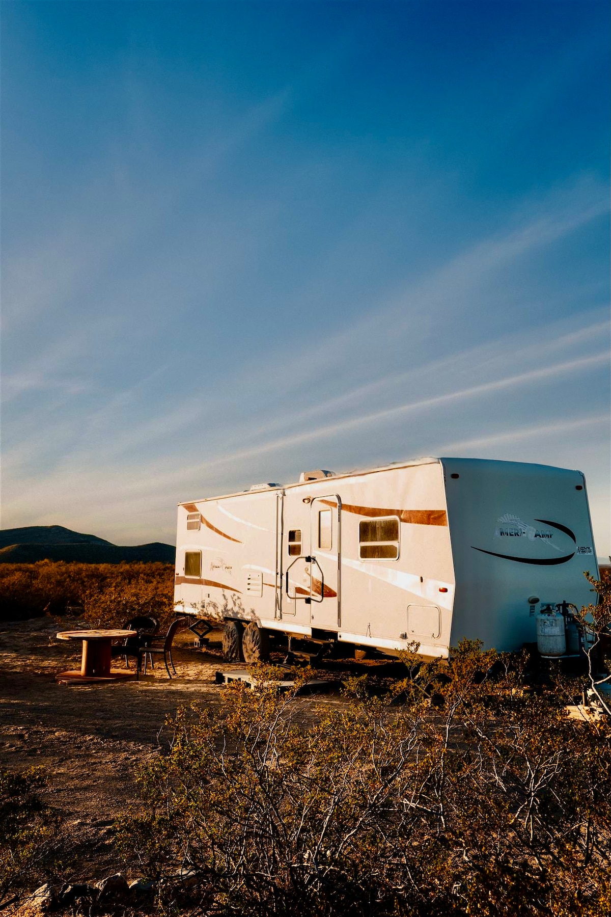 Tangkilikin ang kagandahan ng kalikasan sa hindi malilimutang bakasyunang ito sa lambak ng Hueco. Napakagandang tanawin ng North Mountain at West Mountain. Nasa RV na ito ang lahat ng kailangan mo para sa 2. Kusina, full - size na higaan, banyo at shower. Tamang - tama ang kailangan mo para sa pagbisita mo sa Hueco Tanks. Wifi, TV. Pinapayagan ng mga alagang hayop ang $25/pamamalagi.