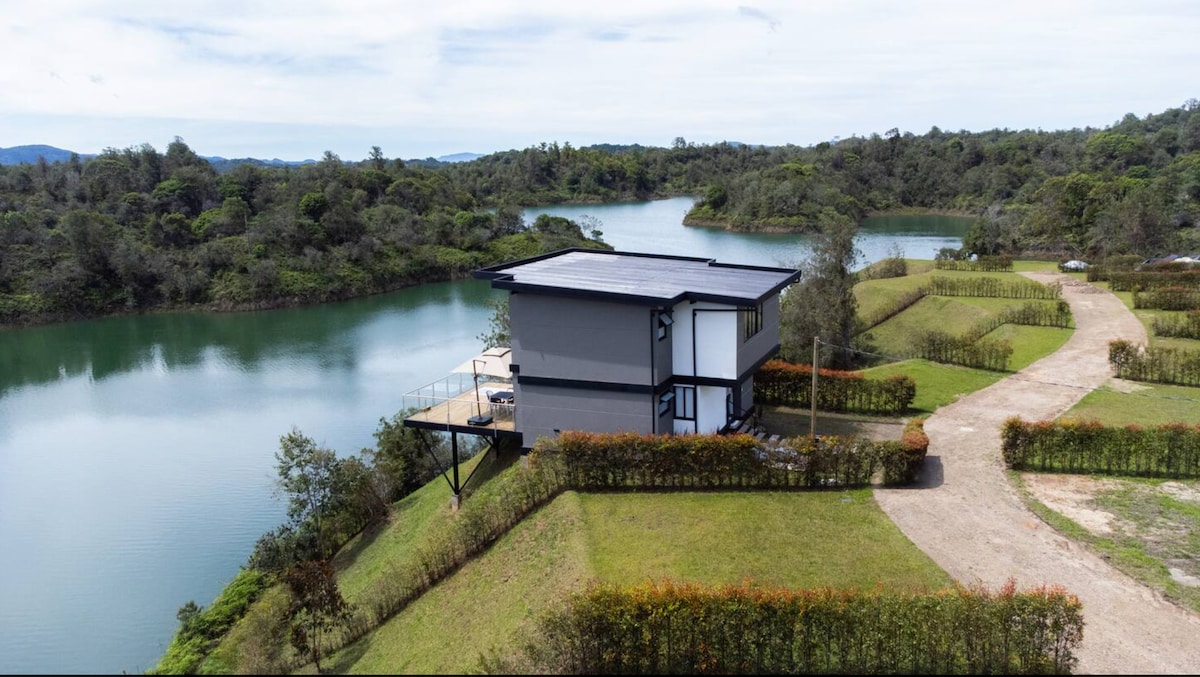 * The lake levels are back & the docks are floating! * Experience the awe-inspiring Arc House, an architecturally designed gem on a private bay, just 10 minutes from Guatape. Glass walls, 20-foot ceilings, and panoramic nature views make it truly unique. The house features 2 queen bedrooms, ensuite bathrooms, balconies, and a sofa in the living area to accommodate a total of 6 people. The high-quality kitchen is a chef's dream, complemented by a dining table for 6 and a lake-view balcony.