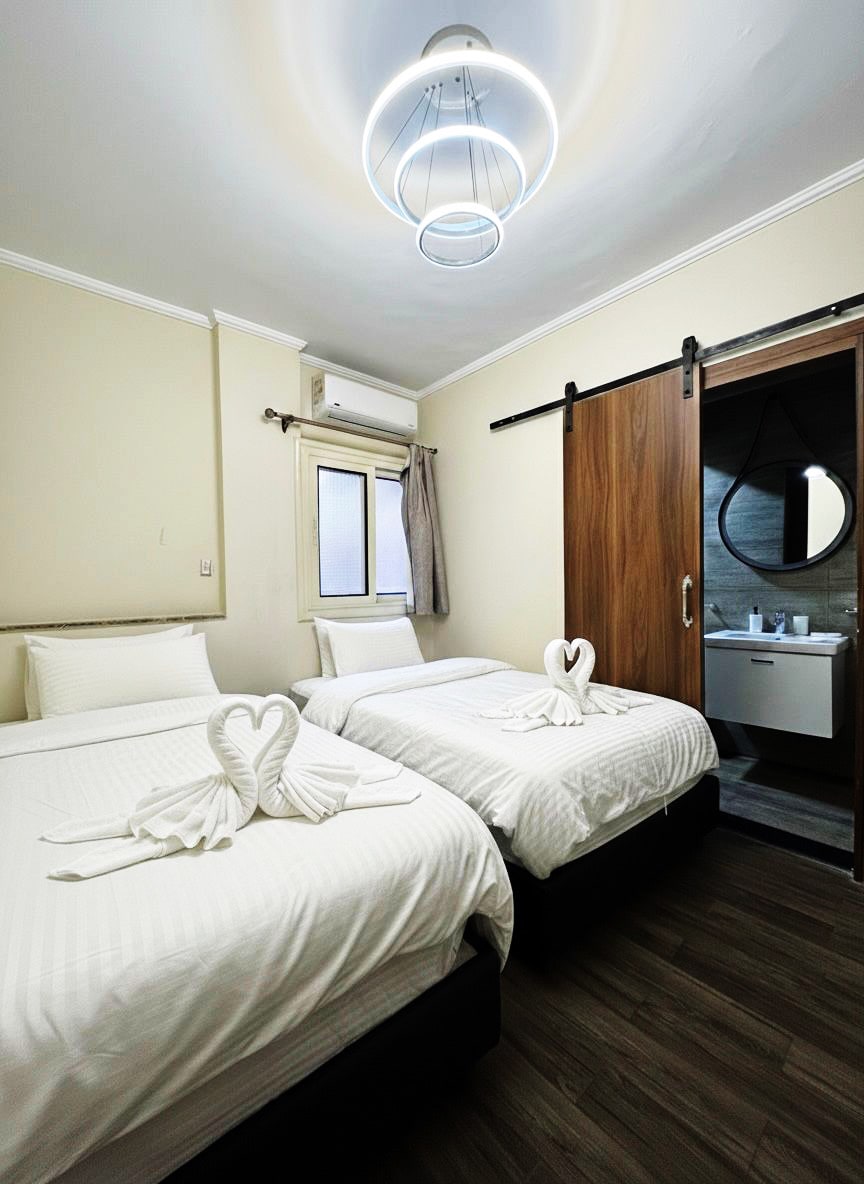 Damhin ang masiglang pulso ng downtown Cairo mula sa eleganteng apartment na may dalawang silid - tulugan na ito. Sa modernong dekorasyon at komportableng kapaligiran, idinisenyo ang bawat sulok para sa kaginhawahan at pagpapahinga. Inaanyayahan ka ng maluwang na sala na magrelaks pagkatapos ng isang araw ng paggalugad, habang ang kusinang kumpleto sa kagamitan ay nagbibigay - daan para sa walang kahirap - hirap na kainan. Tangkilikin ang kaginhawaan ng high - speed na Wi - Fi, air conditioning, at smart TV na may Netflix, na tinitiyak na mayroon ka ng lahat ng mga modernong amenidad sa iyong mga kamay.