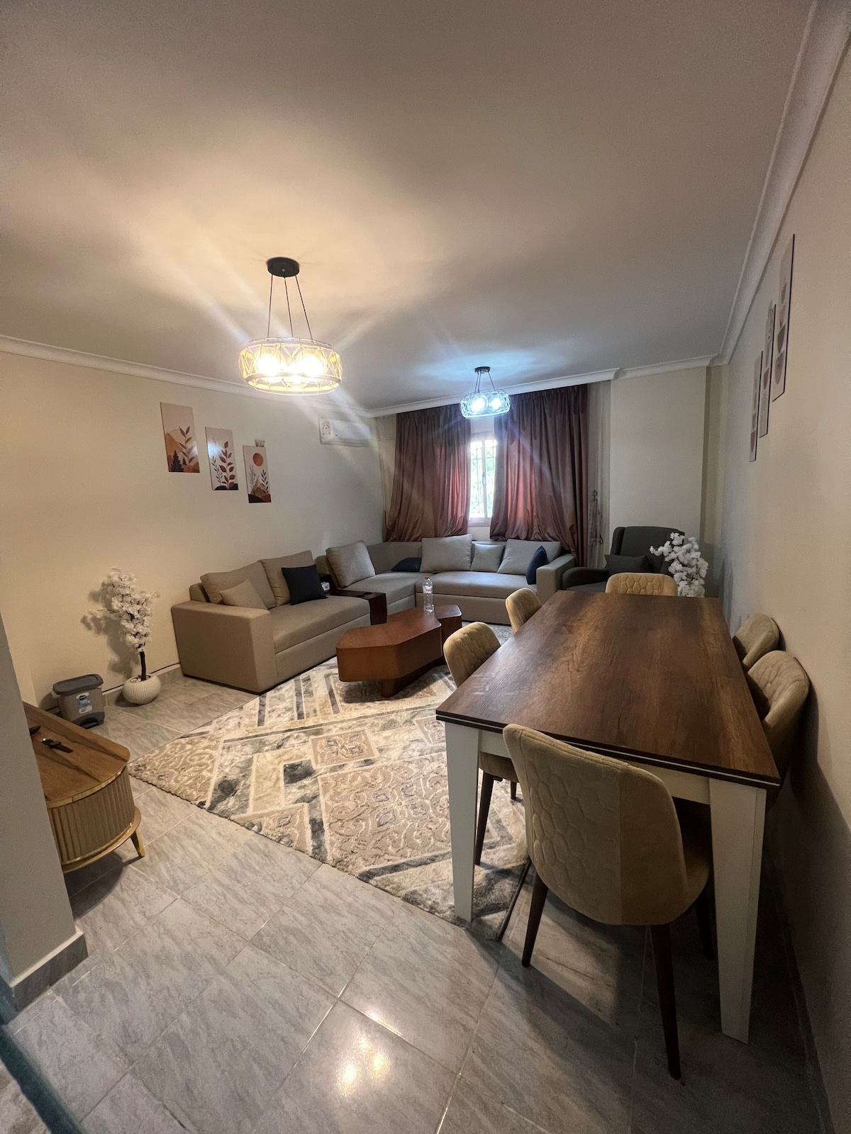 Magrelaks kasama ng buong pamilya sa mapayapa at naka - istilong tuluyan na ito. Ang buong apartment ay matatagpuan sa isang maganda at berdeng lugar sa isang mapayapa ,ganap na pinagsamang komunidad na tumutupad sa lahat ng mga pangangailangan ng mga residente. Ang mga kuwarto ay bagong inayos, naka - air condition, may lahat ng amenidad, sobrang LINIS, at TAHIMIK. 25 minuto ang layo ng apartment mula sa Cairo intInternational Airport, malapit lang ang mga coffee shop, restawran, supermarket, at parmasya. Karaniwang kalidad ng hotel na may tuluyan tulad ng kaginhawaan.