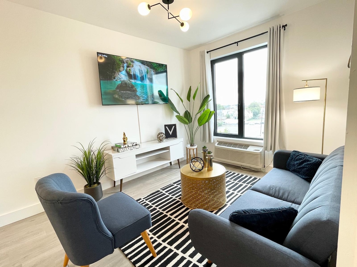 Mamalagi sa Marangyang Tuluyan na may 1 Higaan sa Elizabeth! 7 minuto lang mula sa Newark Airport. 5 minutong lakad papunta sa istasyon ng tren papuntang New York City. 6 na minuto mula sa mga pangunahing shopping, kainan, at libangan. Pumasok sa magandang patuluyan na may kumpletong higaan, sala, kusina, at Smart TV para sa mga paborito mong palabas sa streaming. Dito magsisimula ang perpektong bakasyon mo—para sa negosyo man o paglilibang, magiging tahanan mo ang eleganteng retreat na ito