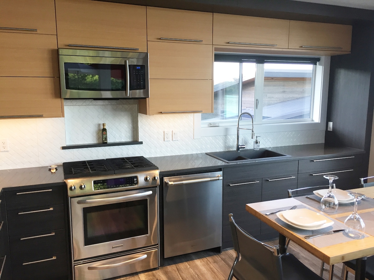 Hi! Bagong itinayo, maliwanag, moderno ang kagamitan at disenyo, 1 kuwarto, 700 sq ft Ocean view suite sa magandang Campbell River. Mag‑book dito para magrelaks sa mga luho sa pinakamagagandang resort nang may kumpletong privacy. Mag-enjoy sa walk-in na rain shower na may pinainit na sahig. Magrelaks sa tabi ng gas fireplace habang nanonood ng Netflix. Gusto mo bang maglibot‑libot? Ilang minutong lakad lang ang layo ng madaling puntahang lokasyong ito mula sa Sea Walk, Ospital, Campbell River Museum, at pampublikong outdoor pool, at nasa tapat ito ng parke.