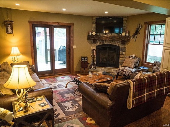 Located just two miles from the Village of Ellicottville, The Pines on Maples offers stunning views & a variety of amenities for relaxation and entertainment. Tucked away in the rolling hills of Western New York, this chalet features a large wood deck with a Weber grill & sitting area, as well as a walk-down path to an eight-person hot tub & an unilock fire pit with Adirondack chairs. State of the art Stuv indoor fireplace for cozy cabin days!