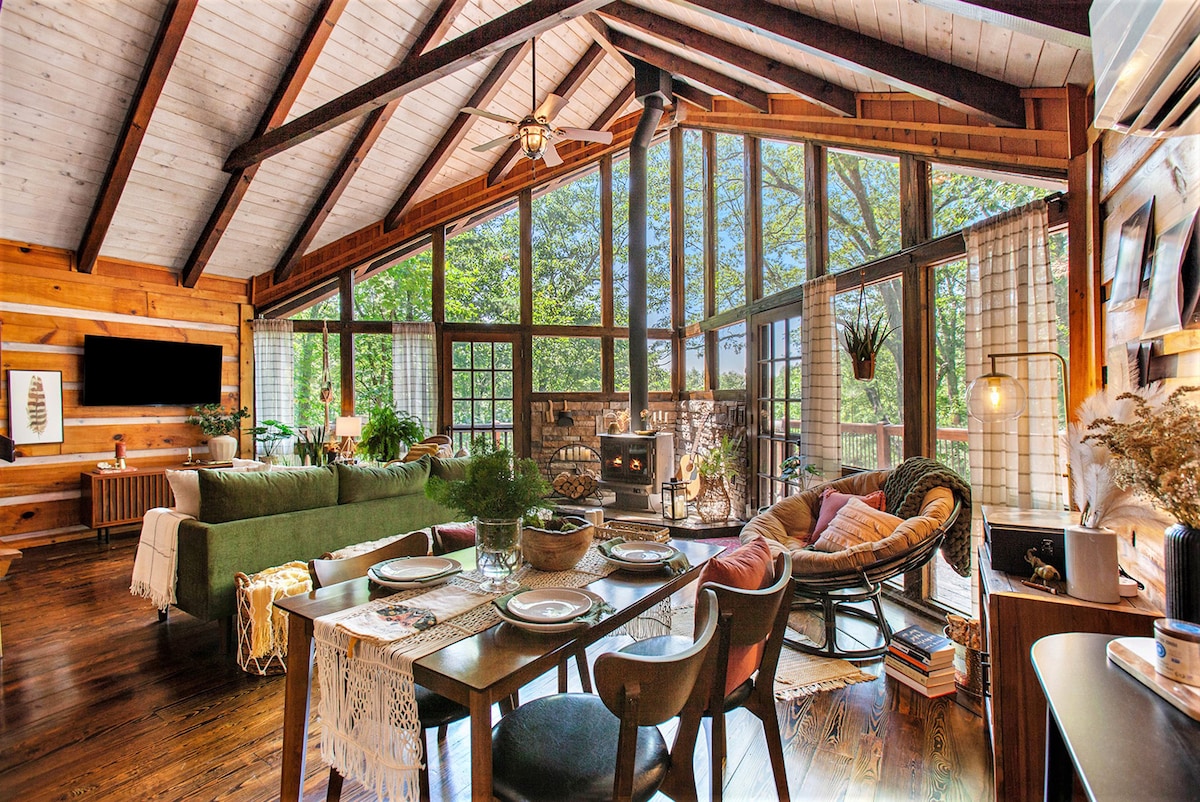 Ever dreamed of sleeping in the lens of a camera on the top of a mountain with breathtaking views? Yeah, us too! In this OMG! Fund-winning stay you will sleep in the lens roughly 15 feet above the ground with a full circular window allowing you to see the beautiful mountainscape from bed. Secluded between two of North Ga's most popular mountain towns, this modern camera themed house is the perfect balance of fun and luxury, from polaroids to document your stay to a luxury rainfall shower.
