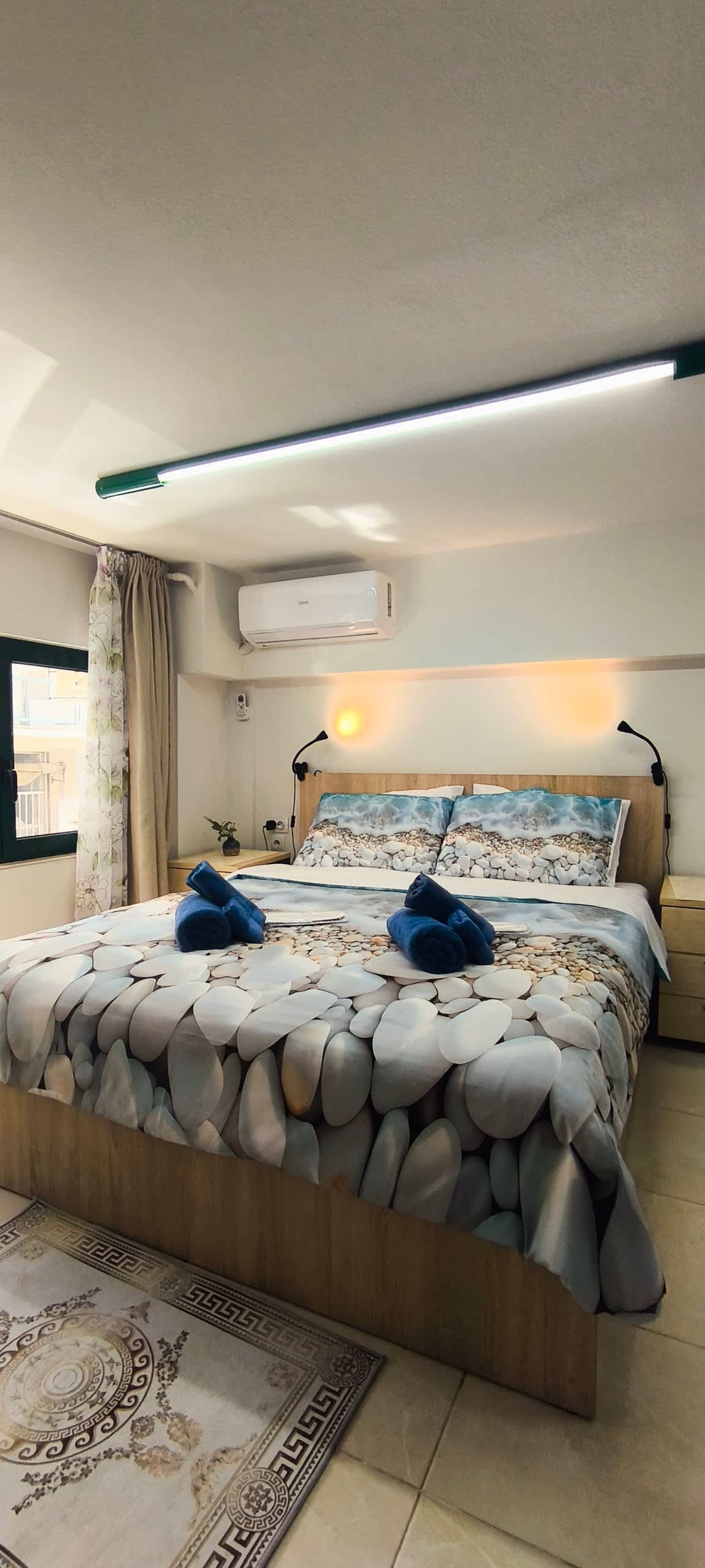 Ang aming Acropolis Signature Residence sa ika -6 na palapag ng Urban Stripes ay isang kanlungan ng kaunting luho sa gitna ng Athens. Pinagsama - sama ang kadakilaan ng sinaunang lungsod na may hindi nagkakamali na panloob na disenyo, ang marangyang tirahan na ito ay nagpapakita ng isang mapagbigay na balkonahe na may mga tanawin ng Acropolis. Nagtatampok ng maluwag na kuwartong may King size bed, ipinagmamalaki rin nito ang open - plan bathroom na may bathtub na lalong magpapaangat sa iyong karanasan.