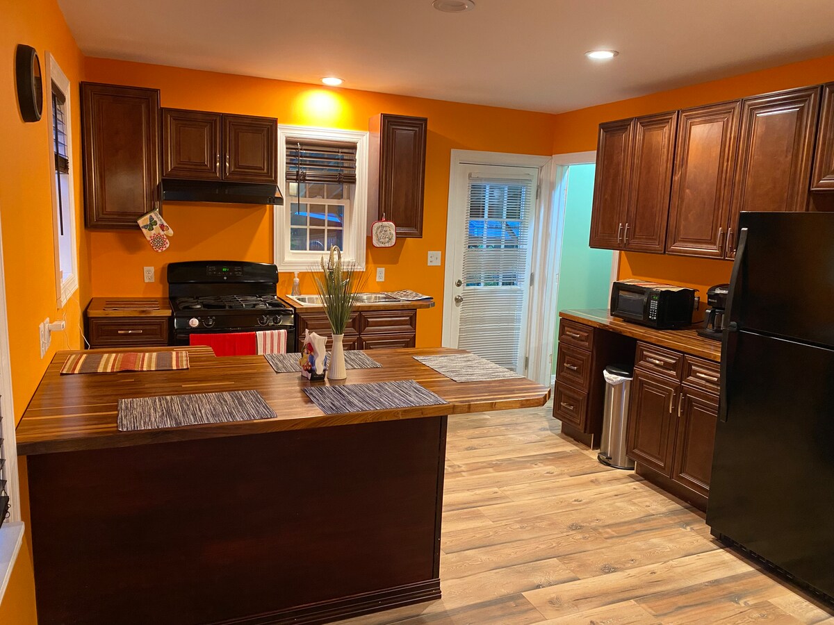 Na - renovate na First - Floor 1 BR Apartment sa Tahimik na Kapitbahayan Nagtatampok ang apartment na ito na may magandang dekorasyon ng malaking bakuran at ilang hakbang lang ito mula sa ilog dike - perpekto para sa mapayapang paglalakad. Mga Detalye at Amenidad: • 50" Roku Smart TV, 400 Mbps WiFi, A/C • Kumpletong kusinang may kumpletong kagamitan na may dishwasher at microwave • Washer at dryer • May mga linen • Paradahan sa labas ng kalye • Mag - book ng bisita na may mga lokal na rekomendasyon Tawag lang ako sa telepono kung mayroon kang anumang tanong at palagi akong natutuwa na tumulong!