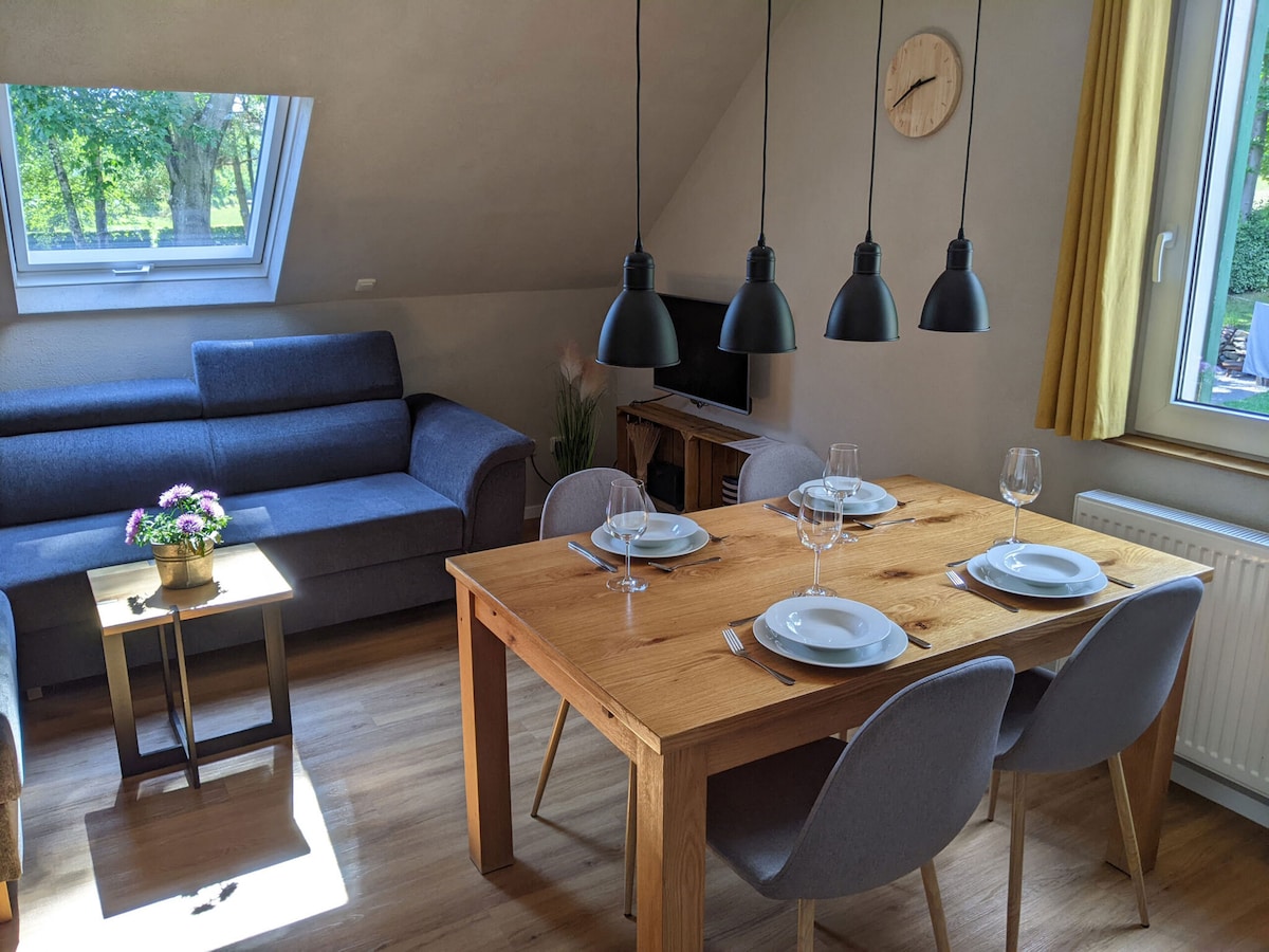 Welcome sa Laube ni Loni. Kalimutan ang mga gawain sa araw‑araw at mag‑enjoy sa Laube ni Loni. Ang iyong moderno at kumpletong tuluyan, na perpekto para sa 2 tao, ay walang kakulangan. Kung kinakailangan, makakatulog ang 2 pang tao sa 1.60 na lapad na sofa bed sa kusinang may kainan. Mag‑relax sa tahimik at liblib na lugar ng malawak na hiwalay na bahay namin. Nasasabik na sina Ilona at Ede sa pagbisita mo