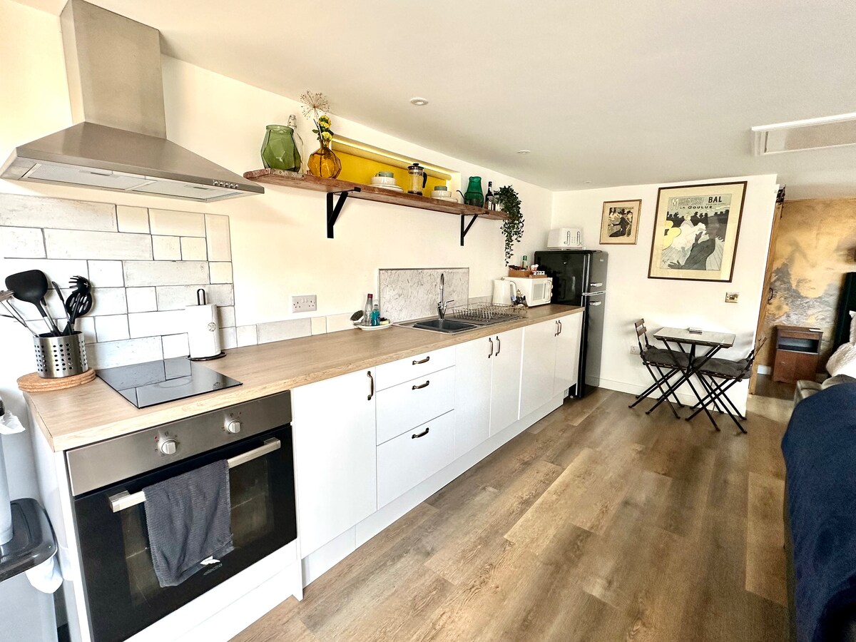 Pumasok sa roll - top bath para sa isang nakakarelaks na pagbababad sa isang chic town - centerre retreat na natapos sa pamamagitan ng award - winning na kasanayan sa arkitektura Ang English Listed. Magbabad sa espasyo ng double - height, naka - vault na atrium hallway at magpahinga sa snug balkonahe. - 2 double bedroom - parehong may mga double bed at kumpleto sa gamit na bed linen at mga tuwalya - Buksan ang Plan Kitchen - ganap na nilagyan ng dishwasher, toaster at takure at mapagbigay na babasagin, kubyertos at mga kagamitan sa pagluluto - Buksan ang Plan ding/sala na may hapag - kainan at upuan para sa anim, dalawang komportableng sofa at coffee table - Banyo na may roll - top bath, shower cubicle, lababo at WC. Ang Pod ay isang ganap na independiyenteng first floor apartment na na - access sa pamamagitan ng sarili nitong courtyard na pasukan sa ground level. Hindi angkop para sa may kapansanan na access. Iginagalang namin ang iyong privacy. Babatiin ka namin sa pagdating mo pero iiwanan ka namin para mag - enjoy sa pamamalagi mo. Pinapatakbo namin ang Architectural and Interior Design showroom sa ground floor. Sumakay sa bus papunta sa sikat na nature reserve ng Fen Drayton at bisitahin ang mylink_ ng mga makasaysayan at kaakit - akit na nayon sa lugar. Ang St Ives ay nakaupo sa ilog Ouse na may magandang quayside at mahusay na mga independiyenteng tindahan, cafe, at restawran. May carpark sa tapat mismo ng pod. Dalawang minutong lakad ang layo namin sa ilog at mga tindahan ng St.Ives. Sampung minutong lakad lang ito papunta sa sikat na ‘Guided Busway‘ ng St Ives, kung saan dadalhin ka ng mga regular na bus sa Central Cambridge nang wala pang 40 minuto
