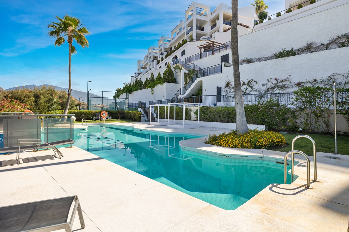 Notre appartement est situé dans un resort luxueux de Los Flamingos à deux pas du fameux hotel deluxe Golf & Spa la Villa Padierna. C'est une magnifique résidence privée et sécurisée 24/24. Vous avez une belle vue partielle sur la mer , avec un accès au magnifique jardin tropical dont 5 piscines, putting green, court de paddle tennis et une aire de jeux pour les enfants . Vous êtes à quelques minutes des Golfs , Tennis. 3km de la plage , 8 mn de Puerto Bañus